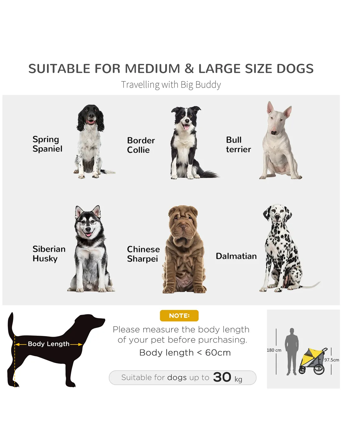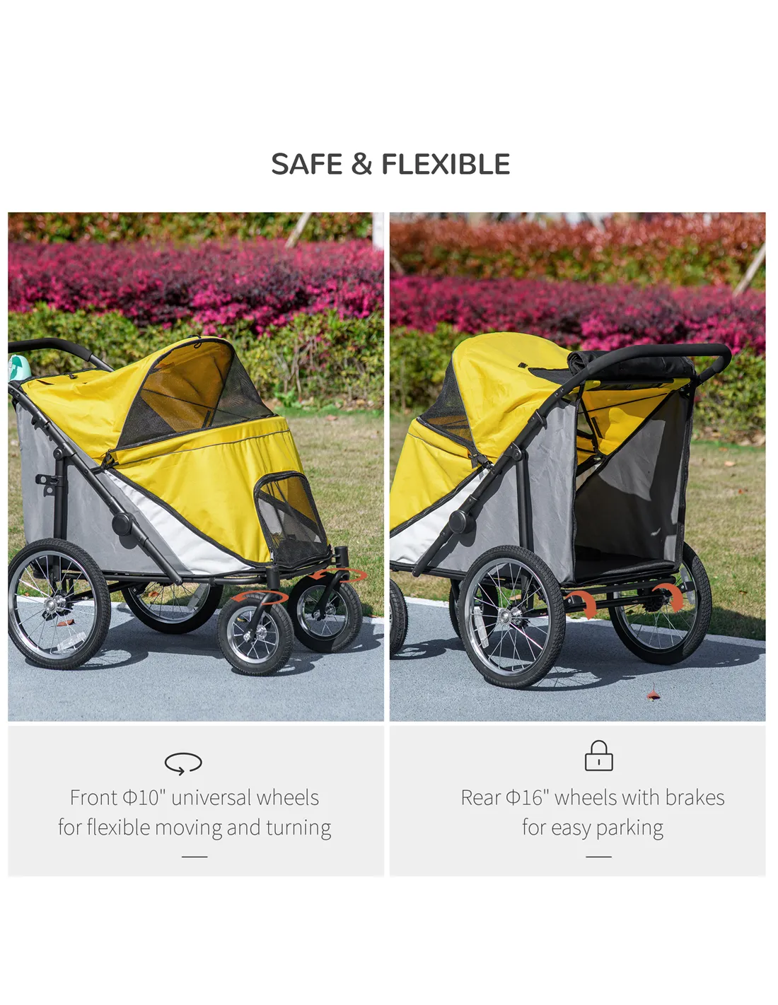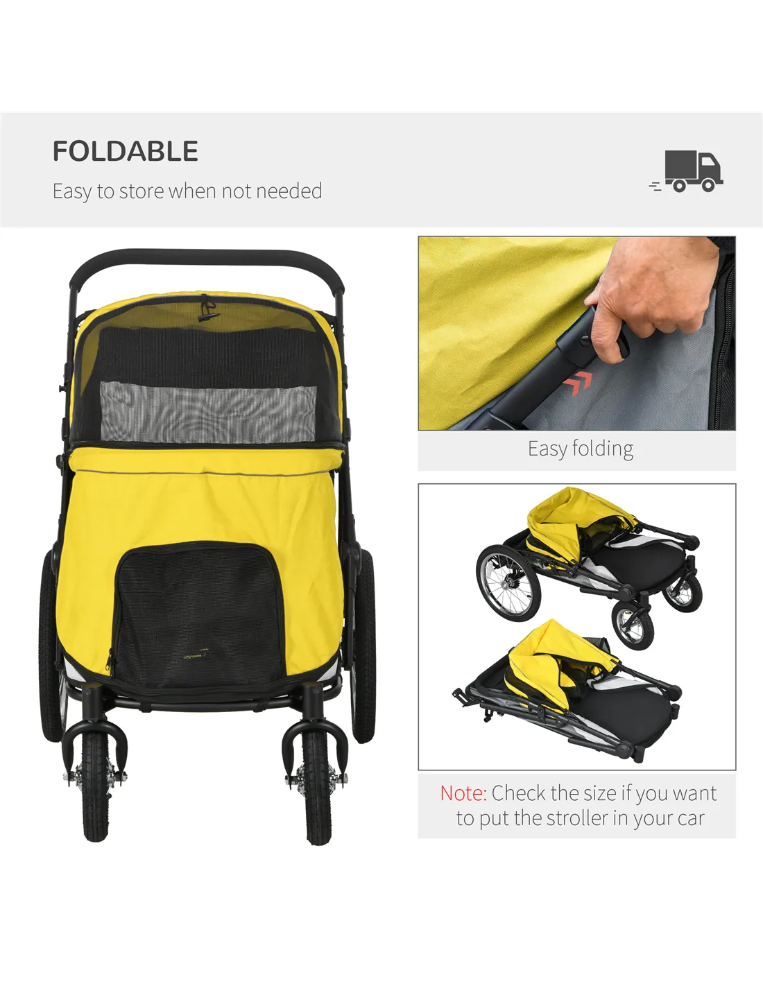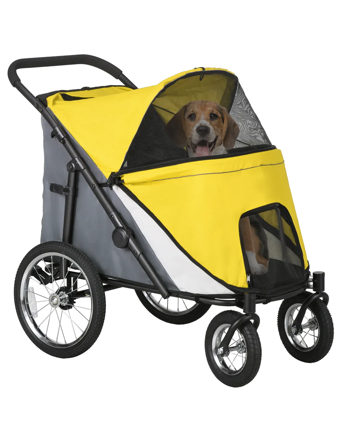 PawHut Foldable Pet Stroller, with Washable Cushion, Storage Bags, Safety Leash, for Medium, Large Dogs, Cats - Yellow