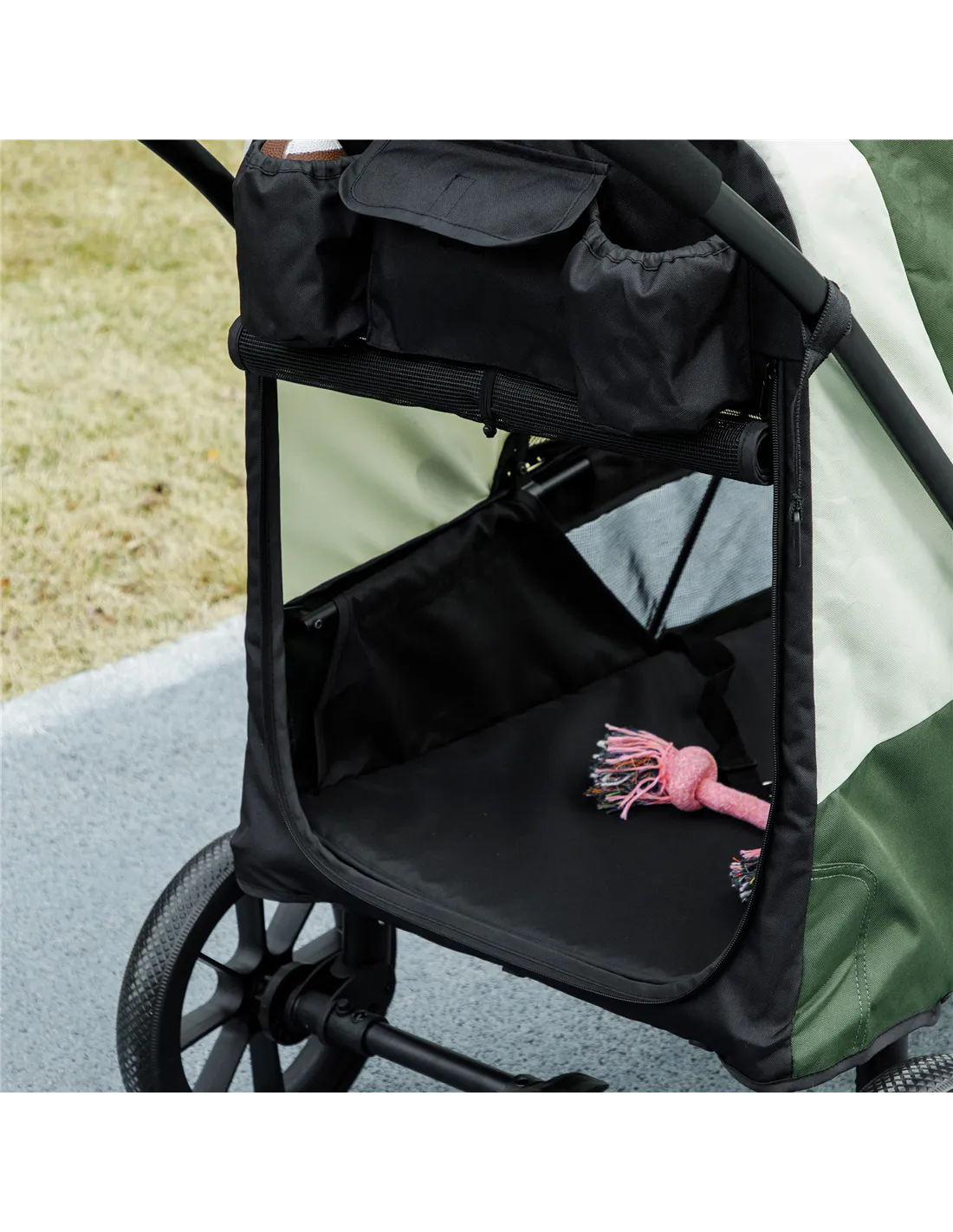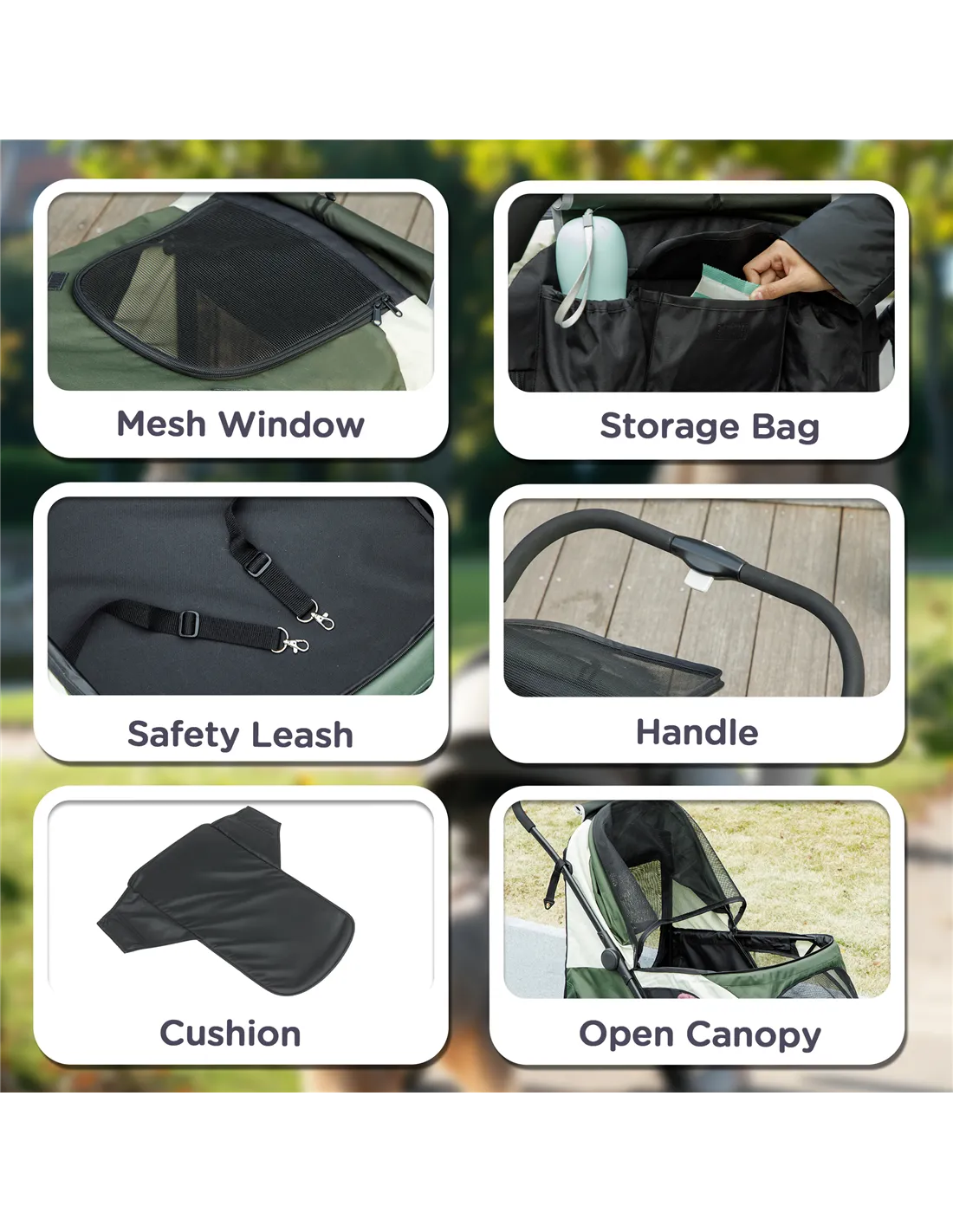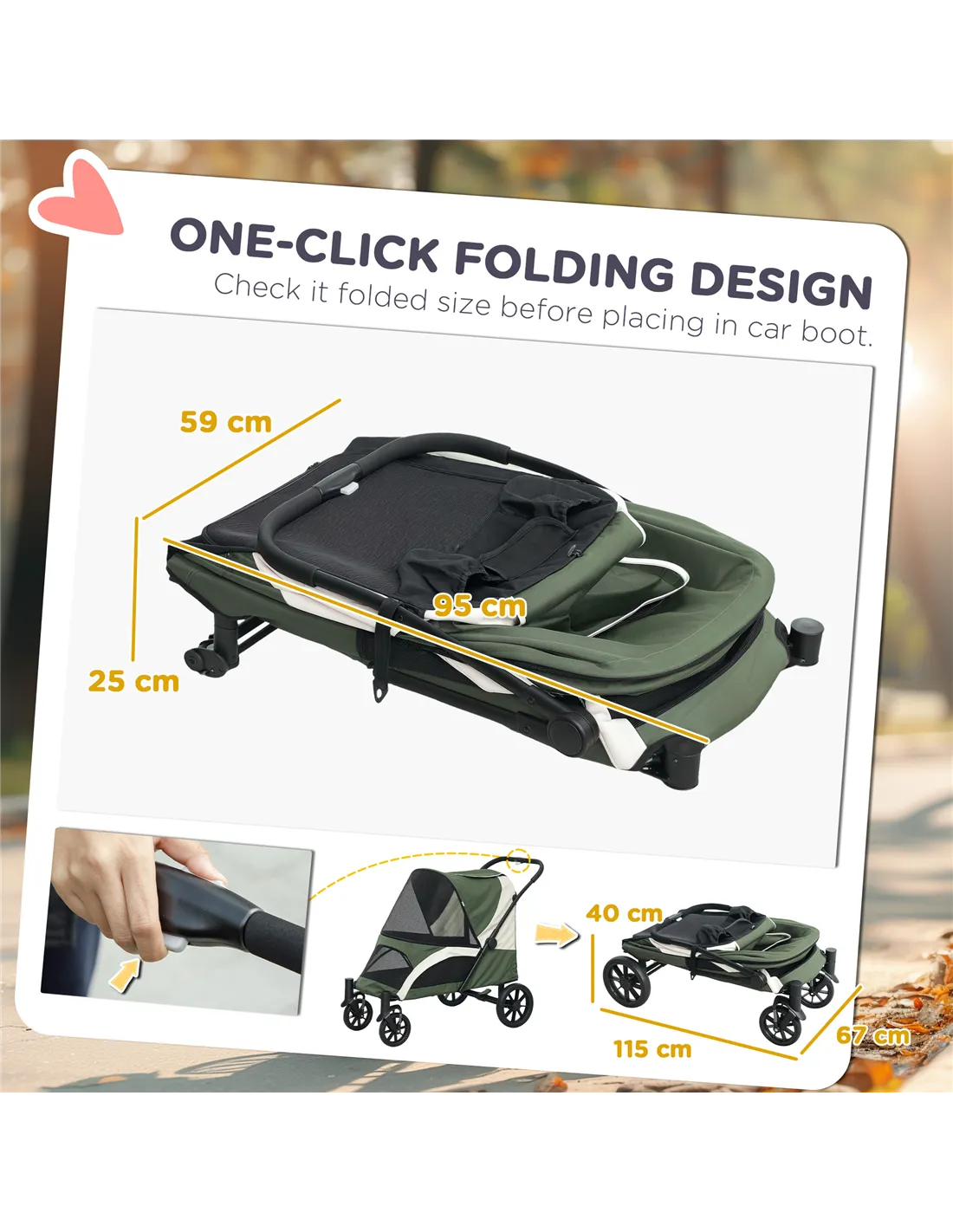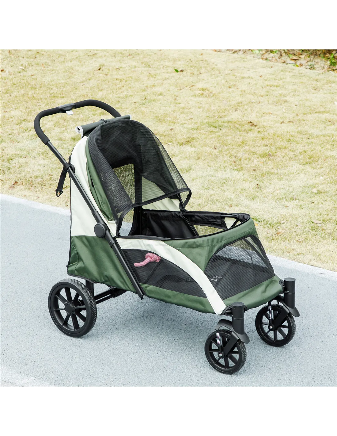 PawHut Foldable Pet Stroller for Large Dogs with Four Big Wheels, Shock-Absorbing Frame, Safety Leashes, Brakes, Dark Green