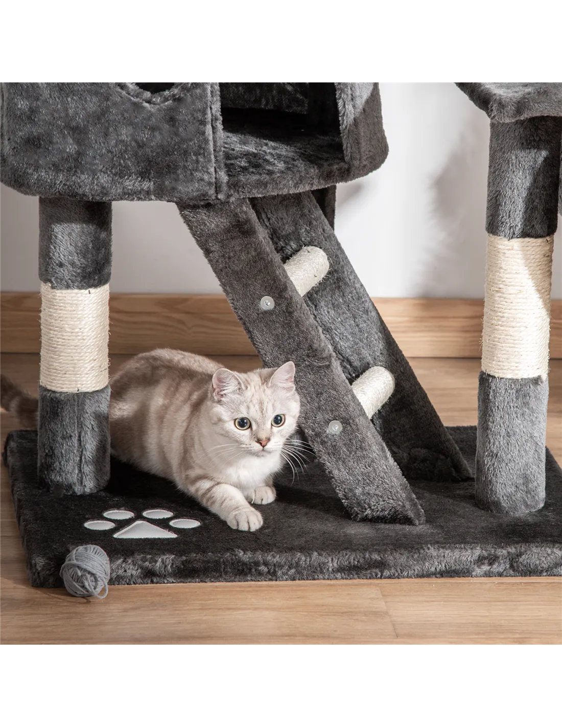 - Overall dimensions: 240-260H x 60L x 45Wcm. Base: 60L x 45Wcm. Cat house: 25H x 45L x 35Wcm. Ramp: 42L x 6Wcm. Hammock: Φ30cm. Cat tunnel: Φ22 x 25Lcm. Platforms: Lower level: 35L x 30cm. Medium level: 60L x 45Wcm. High level: 55L x 30Wcm. Scratching post: Φ7cm