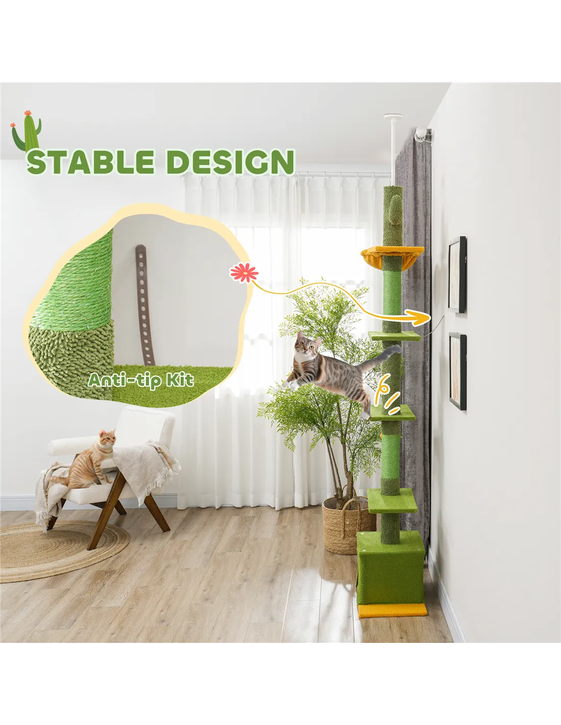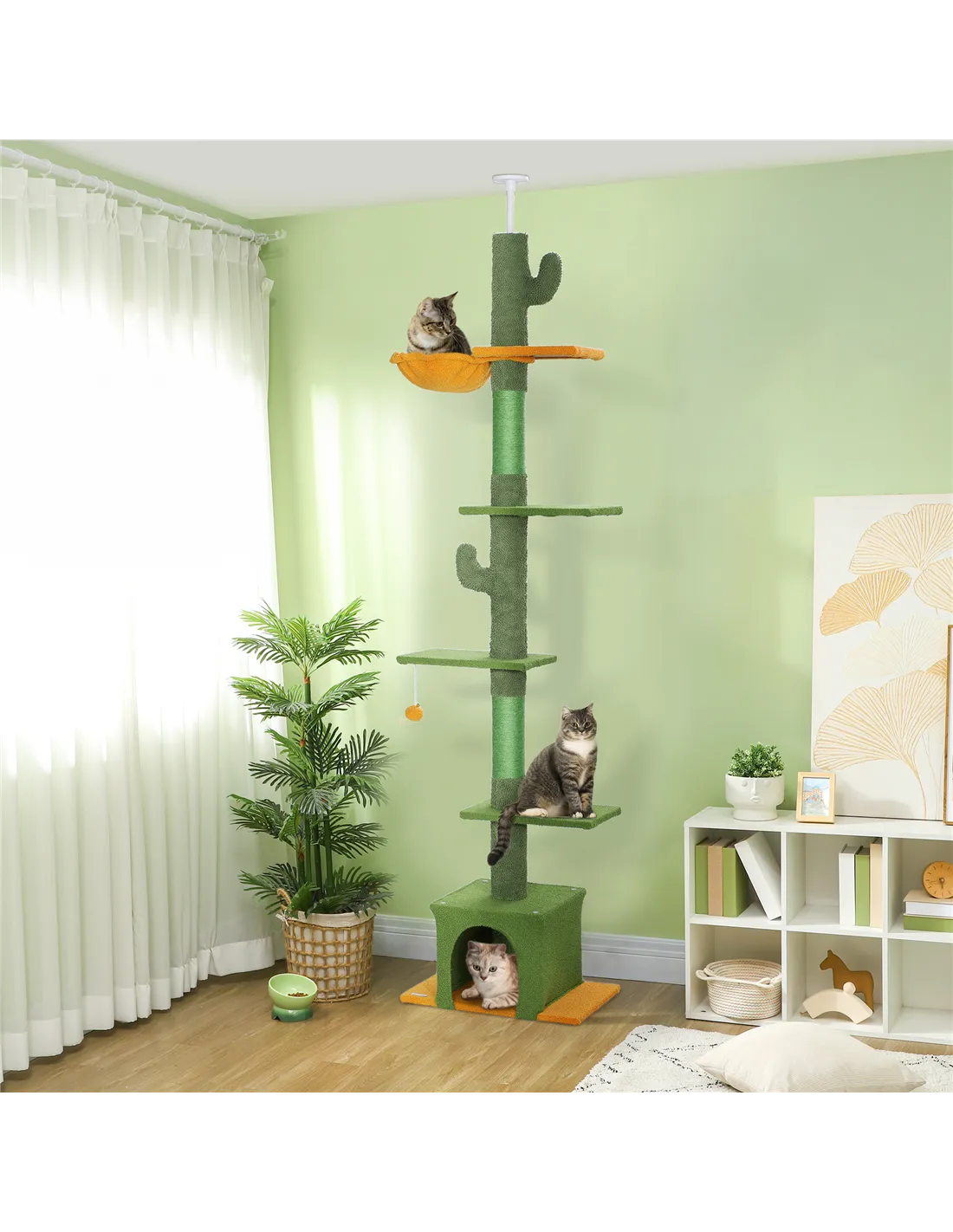 PawHut 230-275cm Floor-to-Ceiling Adjustable Cat Tree with Scratching Posts, Hammock