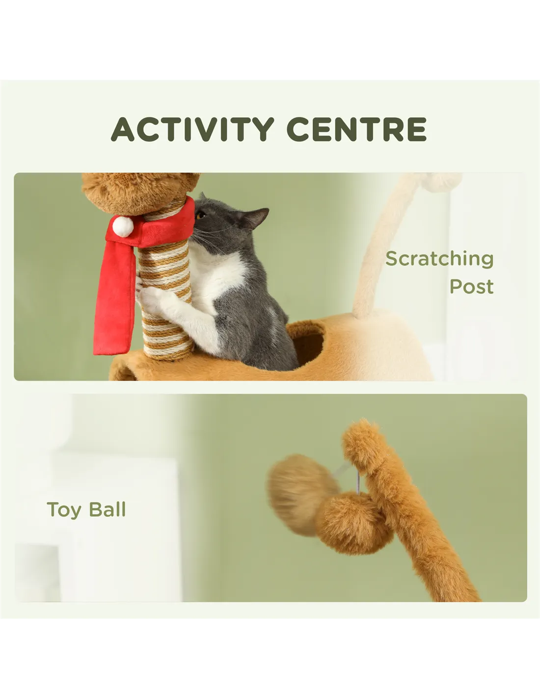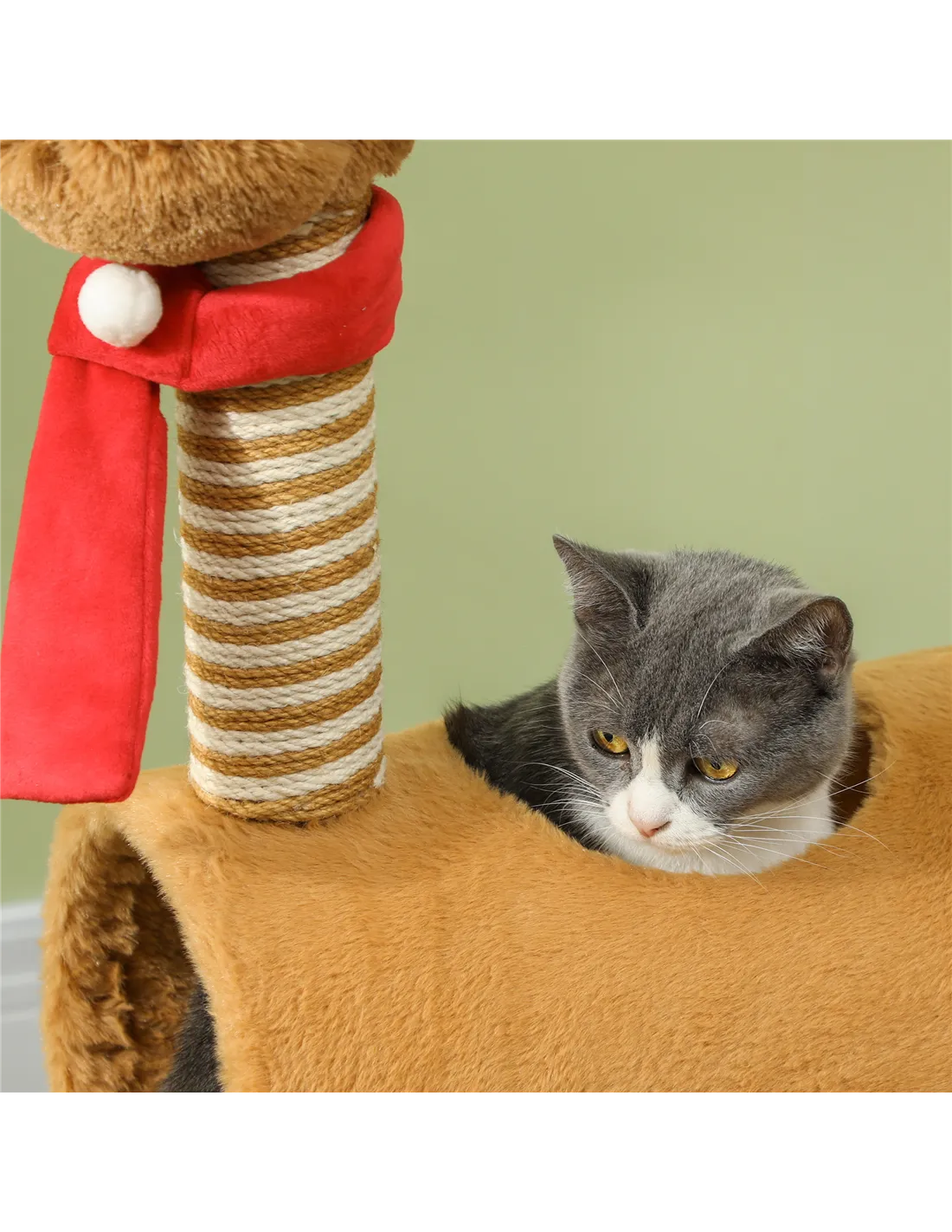 PawHut 98cm Deer-Designed Cat Tree with Scratching Posts, Toy Ball, Tunnel, Brown