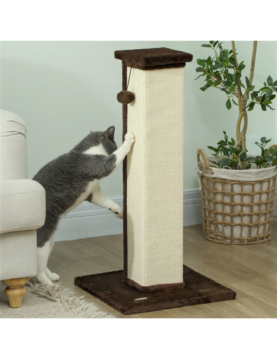 PawHut 81cm Cat Scratcher, Vertical Full Scratcher w/ Natural Sisal Rope, Hanging Ball, Soft Plush - Brown