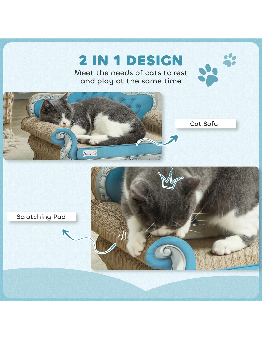 PawHut 2-in-1 Cat Scratcher with Catnip for Indoor Cats, Light Blue