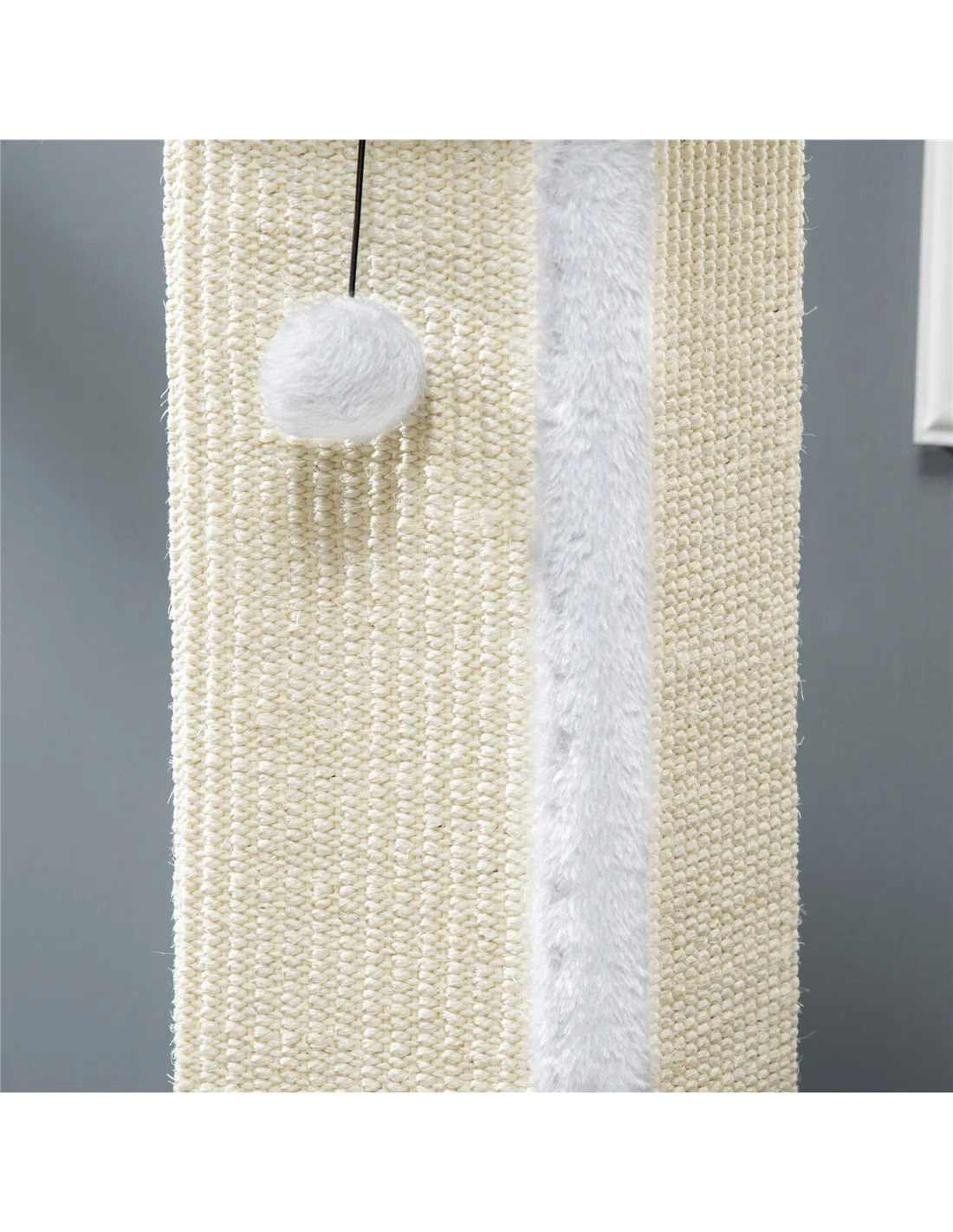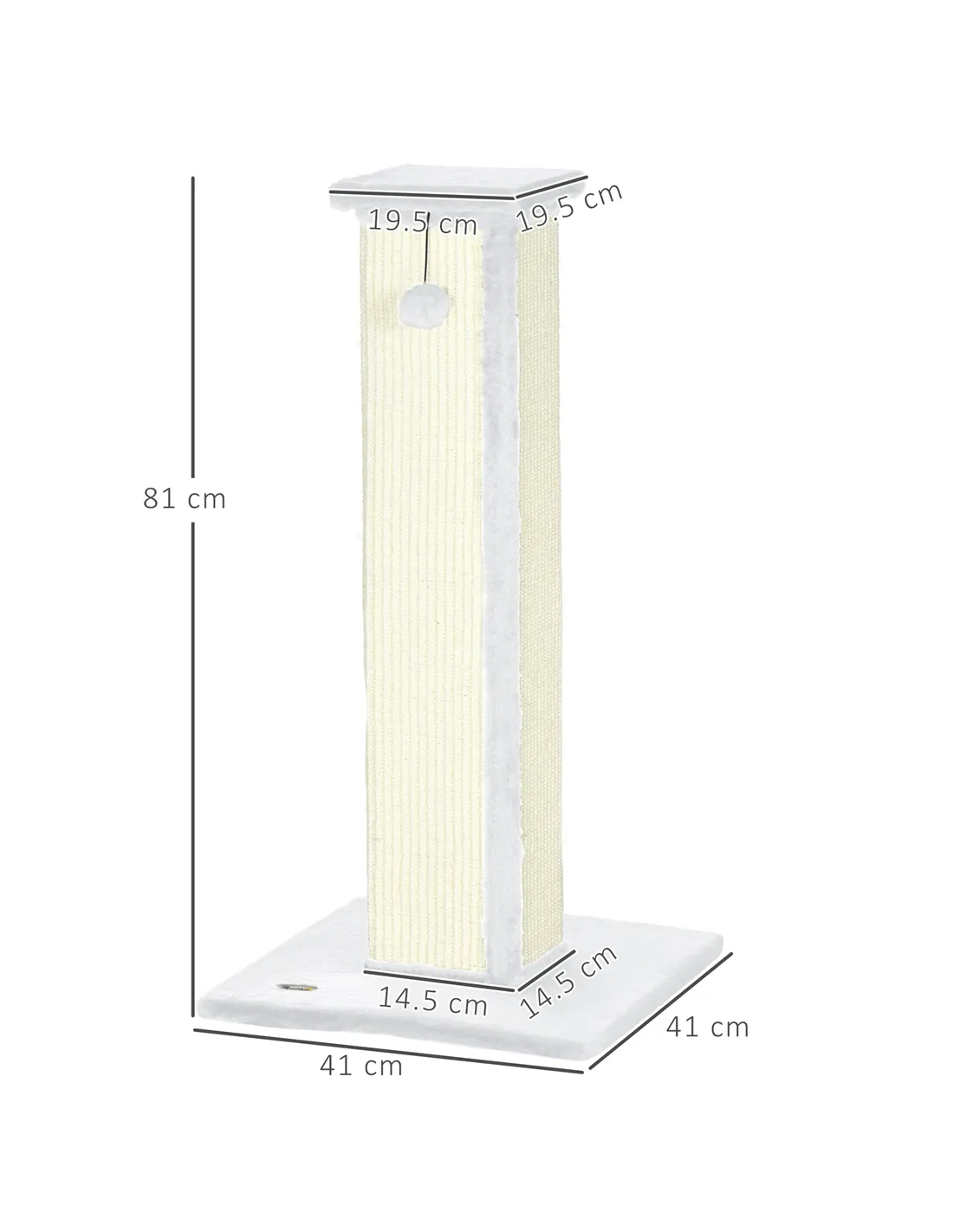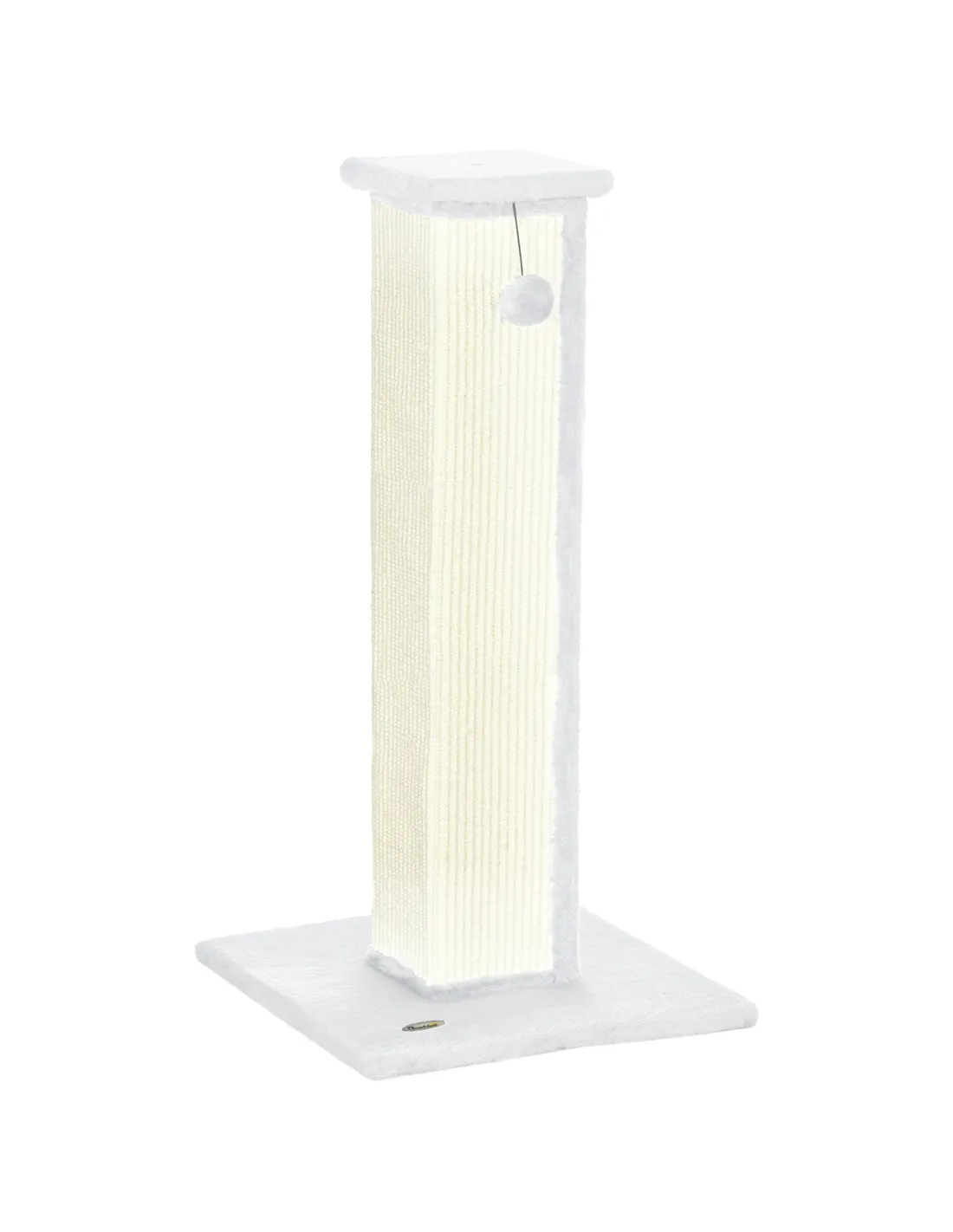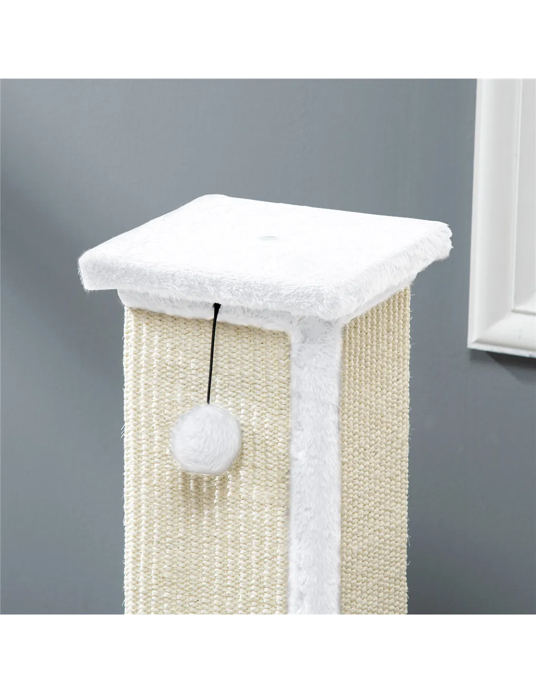 PawHut 81cm Cat Scratcher, Vertical Full Scratcher w/ Natural Sisal Rope, Hanging Ball, Soft Plush - White