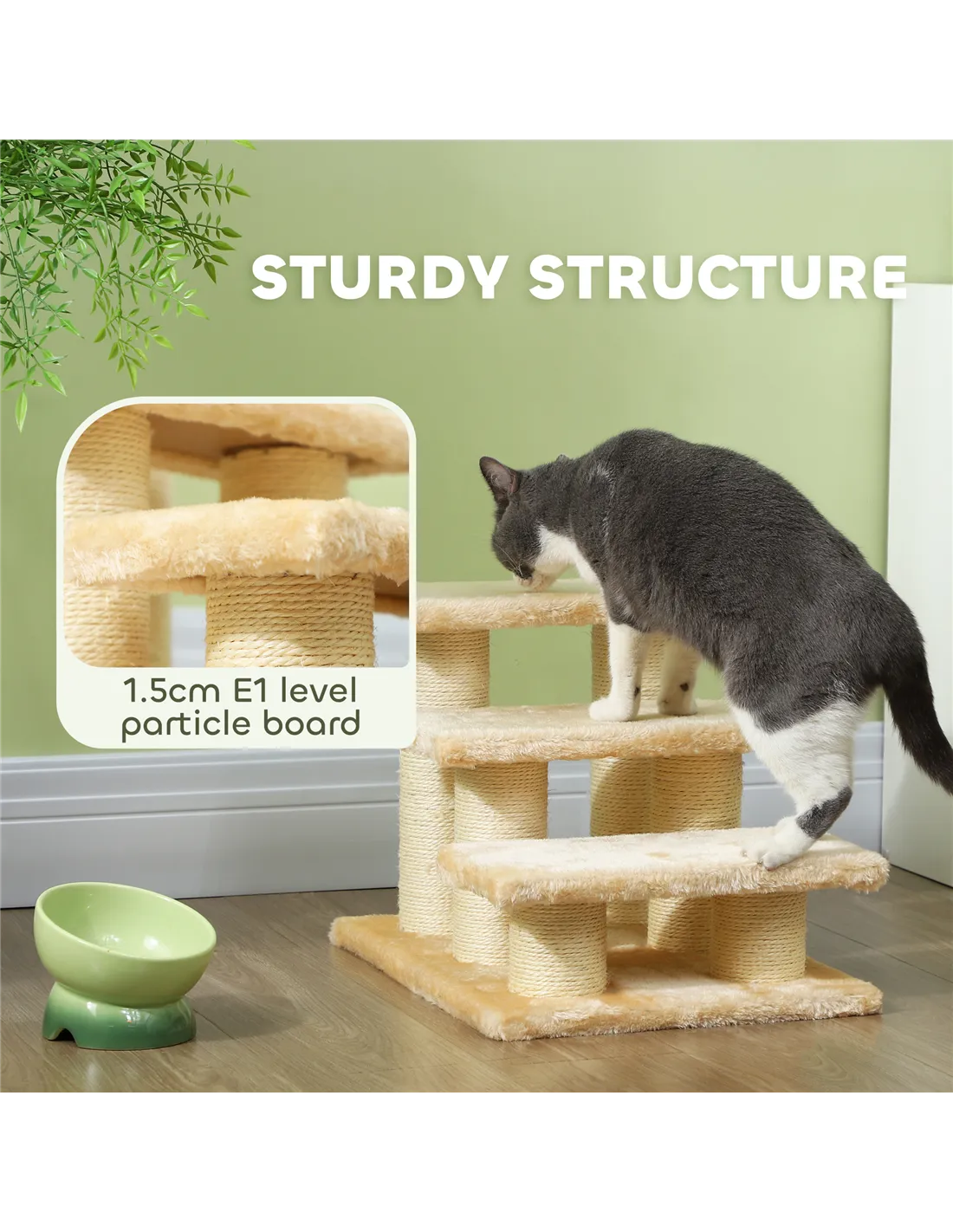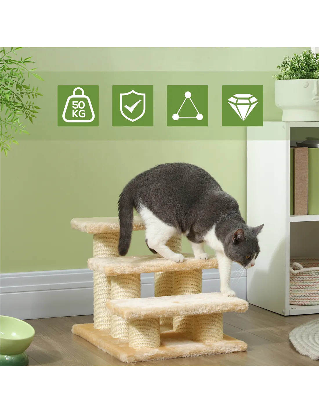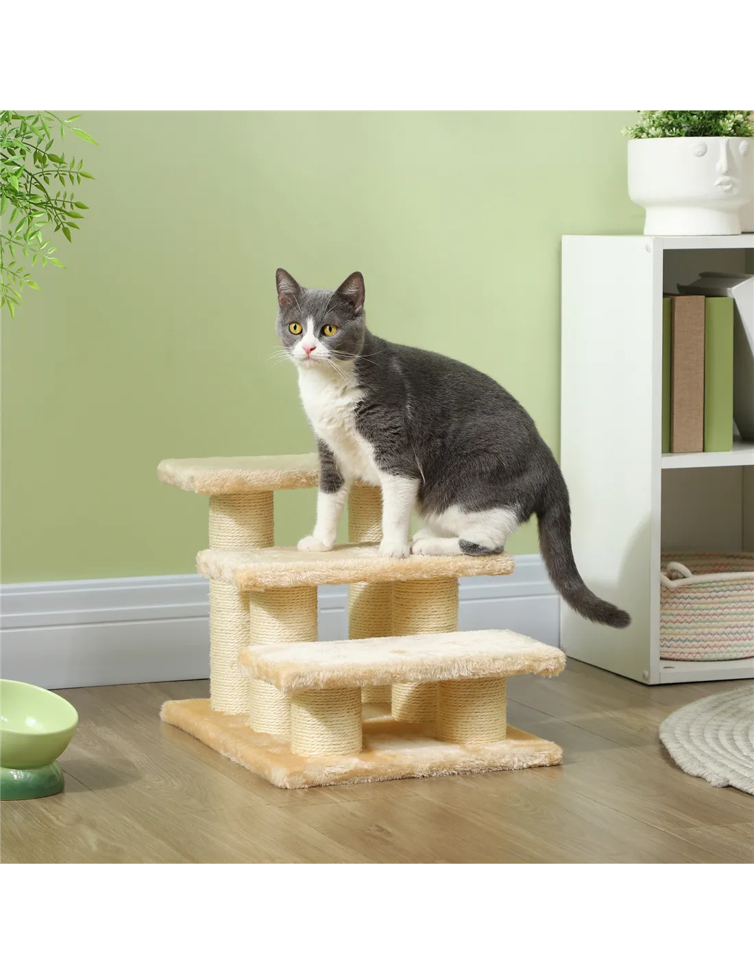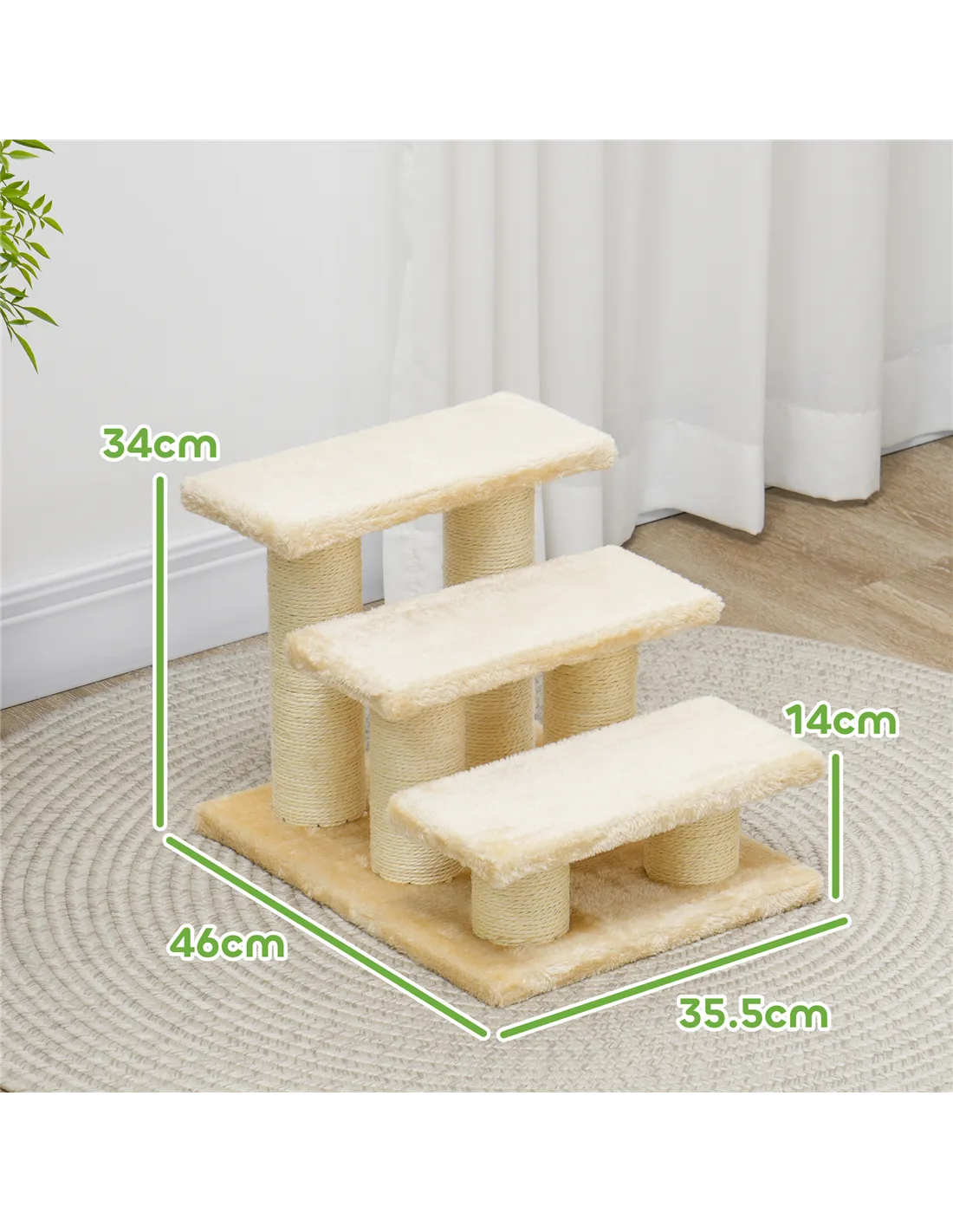 PawHut Pet Stairs 3-step Pet Ladder Cat dog Stairs Climb Ladder Cat Tree, Beige