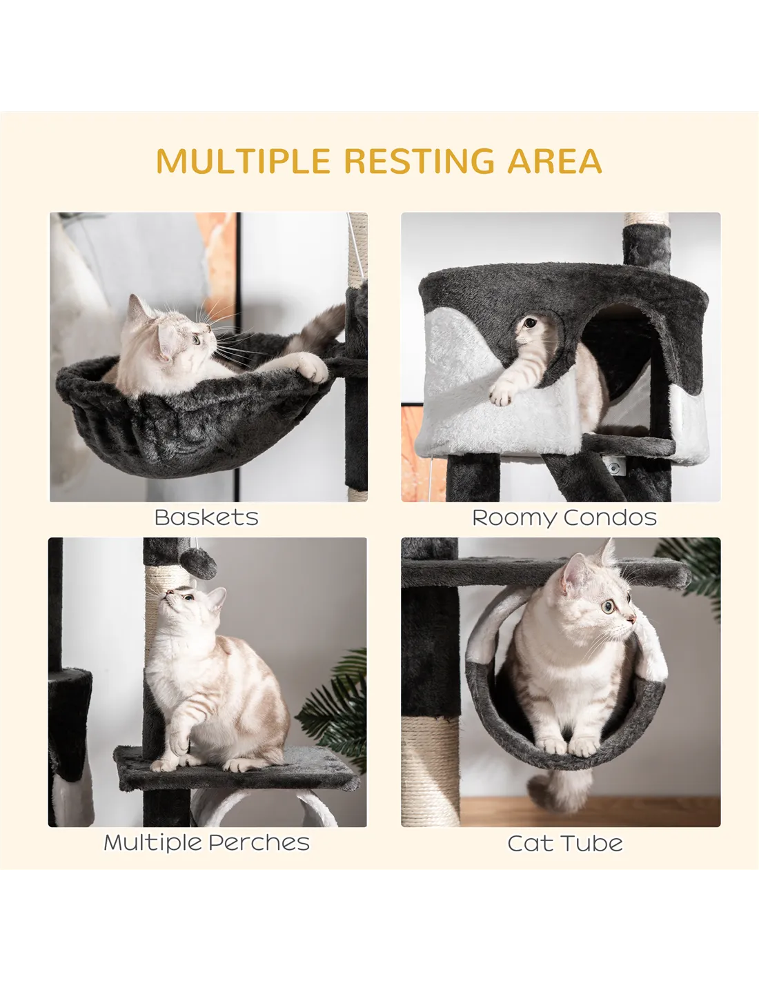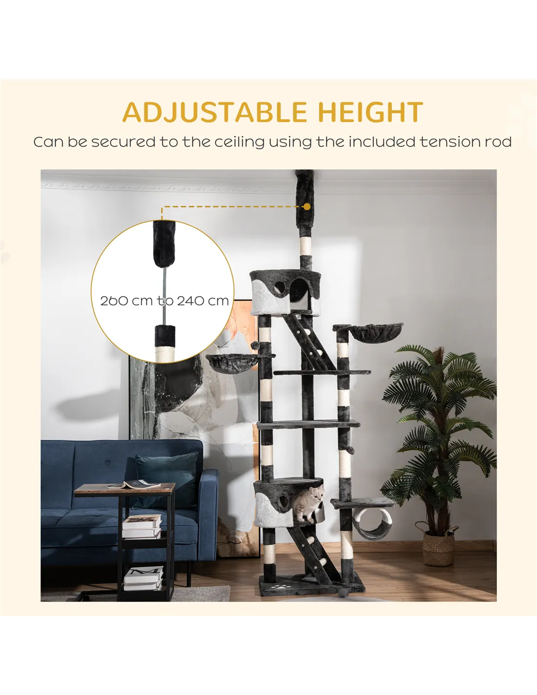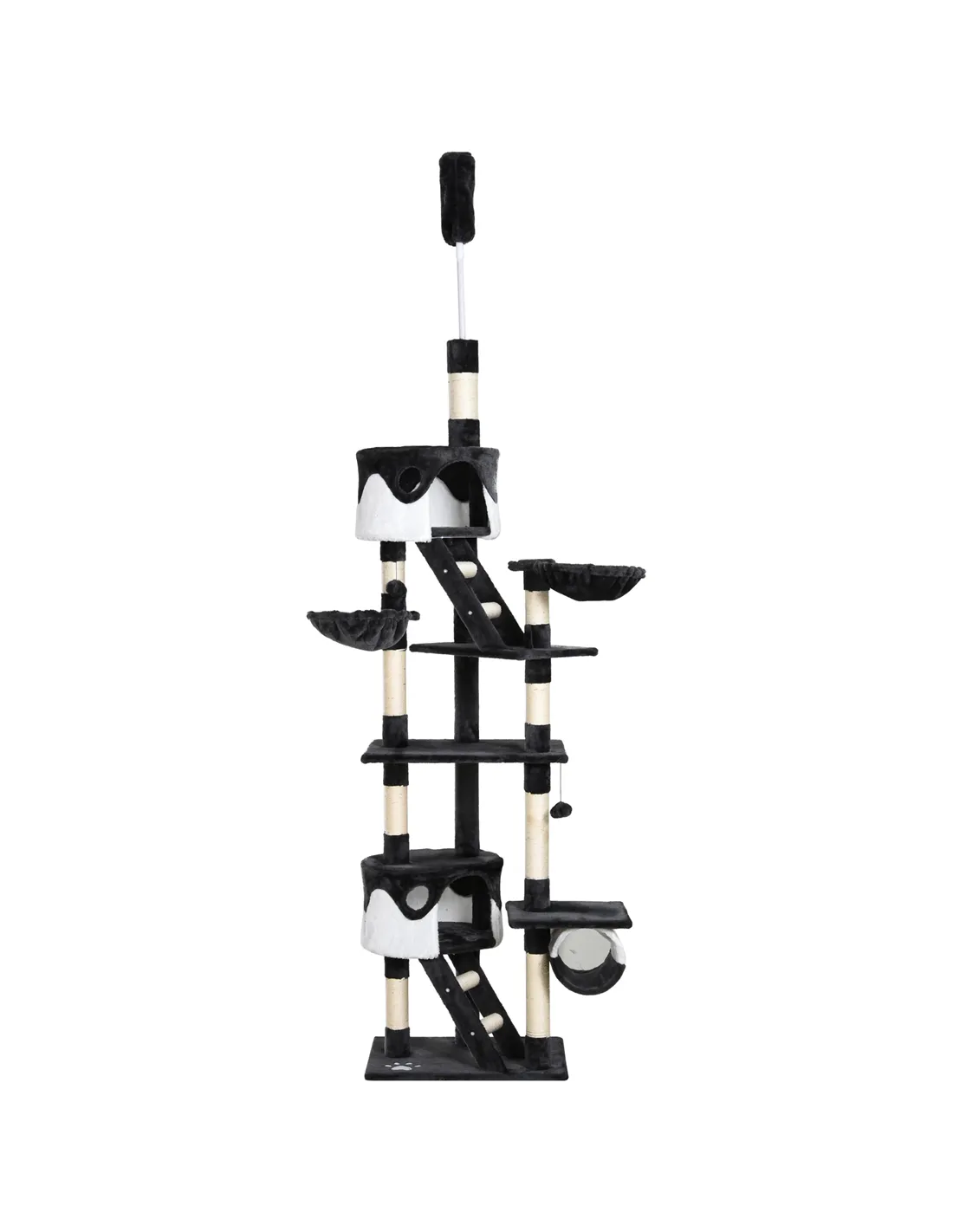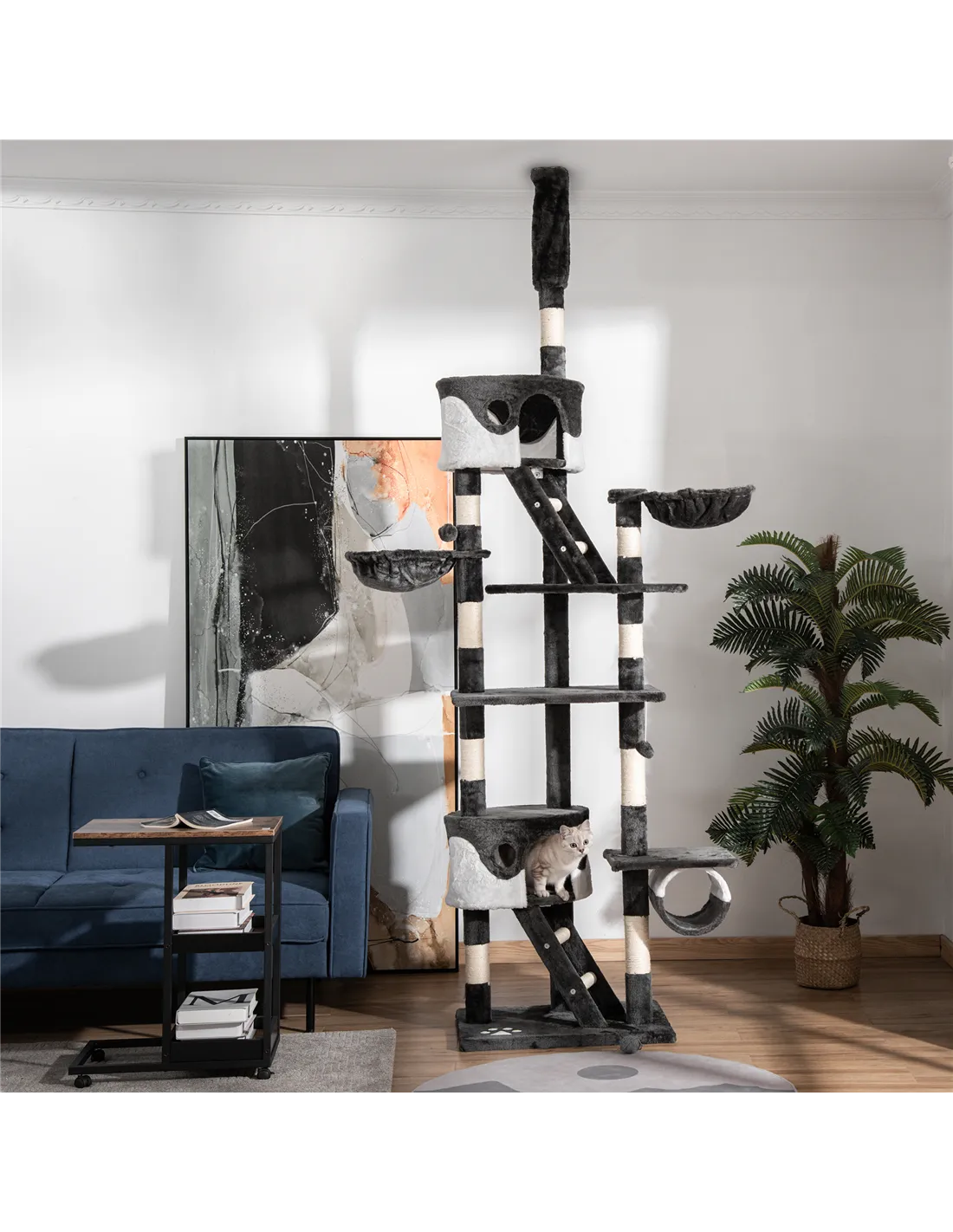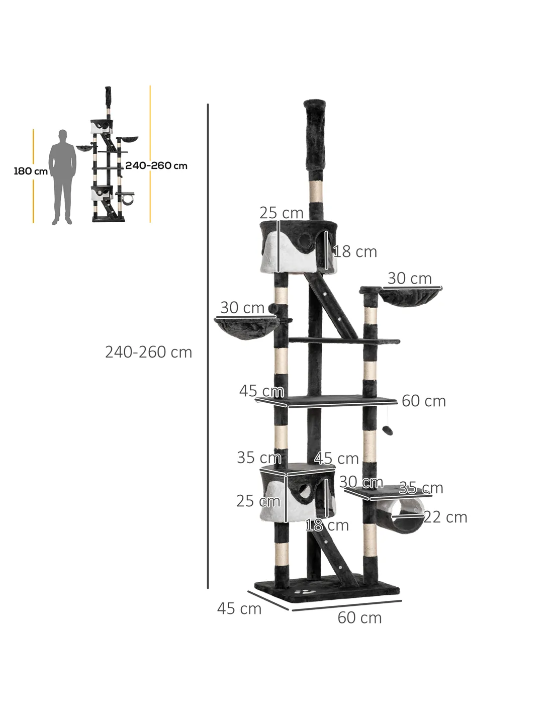 Elevate your feline family’s environment with the PawHut floor-to-ceiling cat tree, a sanctuary designed for households with multiple cats. This versatile structure features numerous platforms, hammocks, and cozy cat houses, offering endless opportunities for play and relaxation. Cats can indulge their natural instincts by scratching the posts, protecting your furniture from wear. Adjustable from 240-260cm, it transforms any room into a paradise where your cats can explore, rest, and thrive.