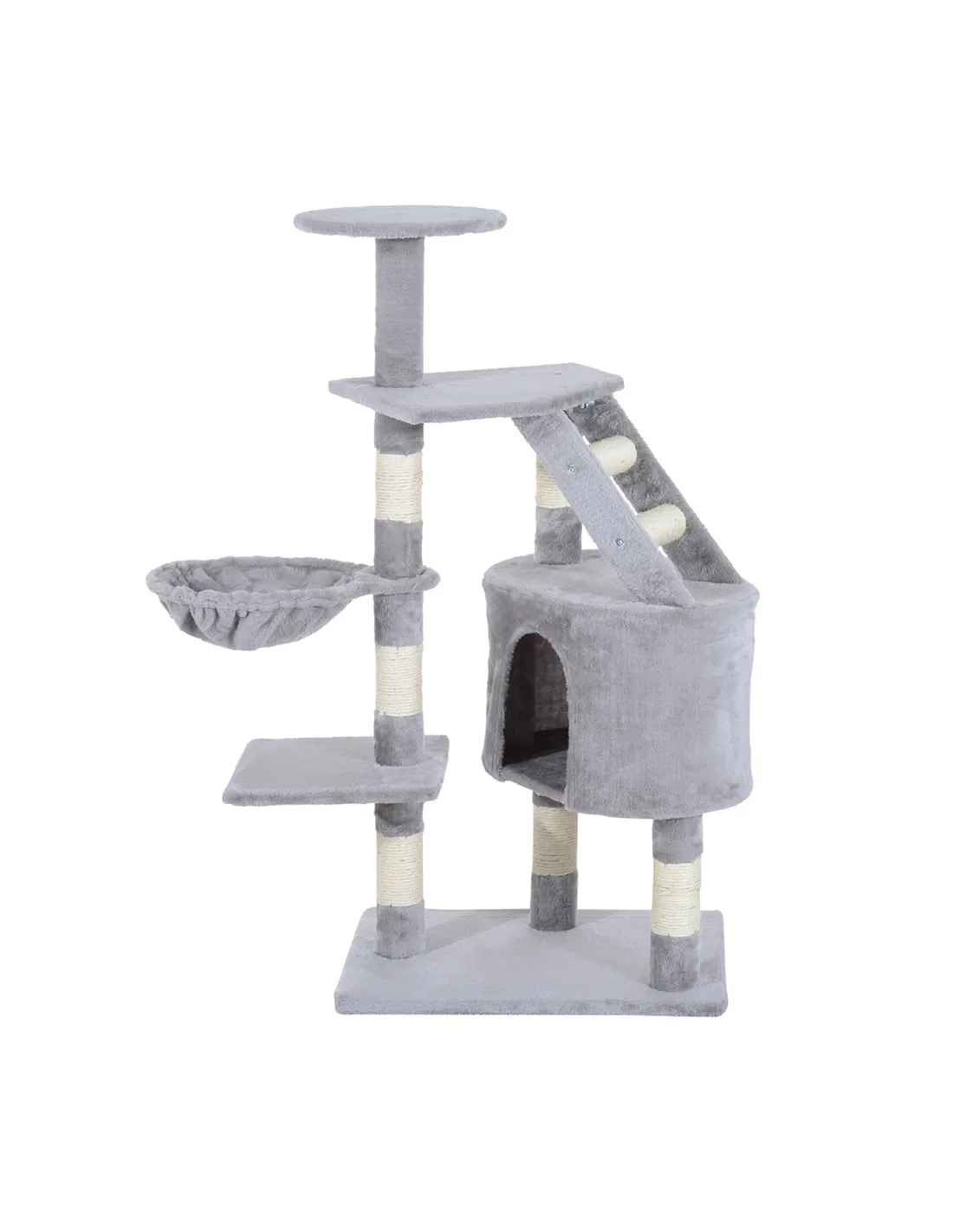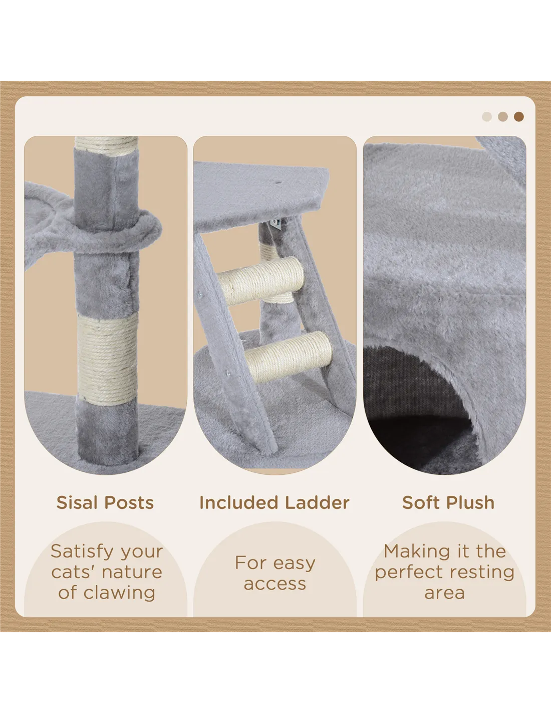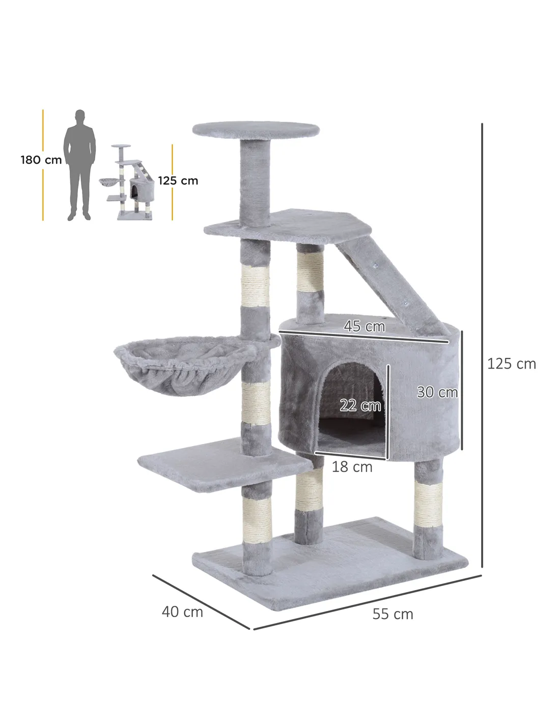 PawHut Cat Tree for Indoor Cats Kitten Scratching Post Scratch Scratcher Climb Activity Center Play House Pet Furniture 125cm (Grey)
