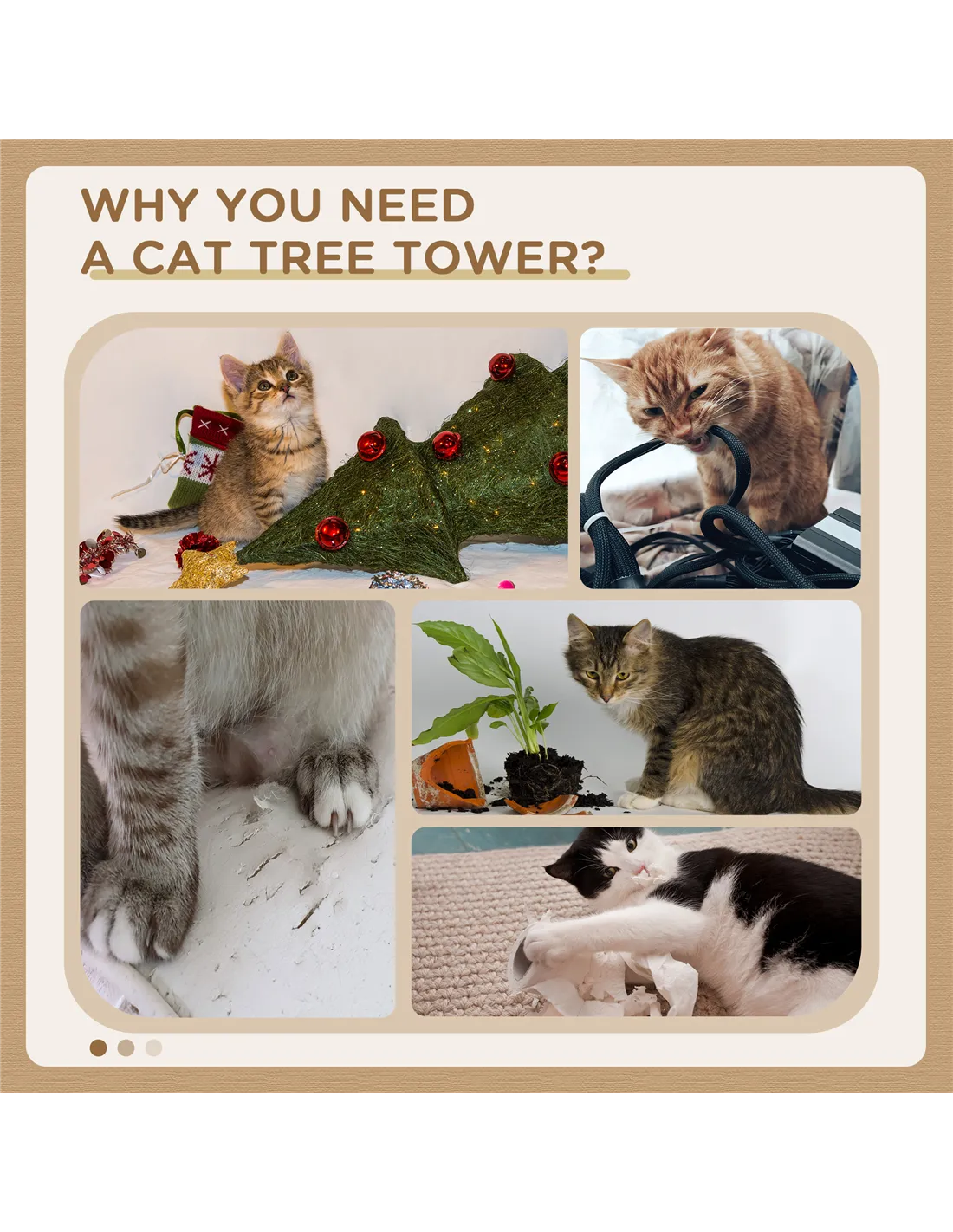 Satisfy your cat's natural instincts safely with this cat tower for indoor cats from PawHut! This cat tree tower features natural sisal covered cat scratch post, ladder, cosy basket, roomy condo and perches. Cat scratcher of this tall cat tree benefits both pets and owners by providing someplace to relieve cats' desire to claw and climb and saving your carpets and household furniture from damage. Rest, play, exercise, your cats can spend all day on this cat play tower.