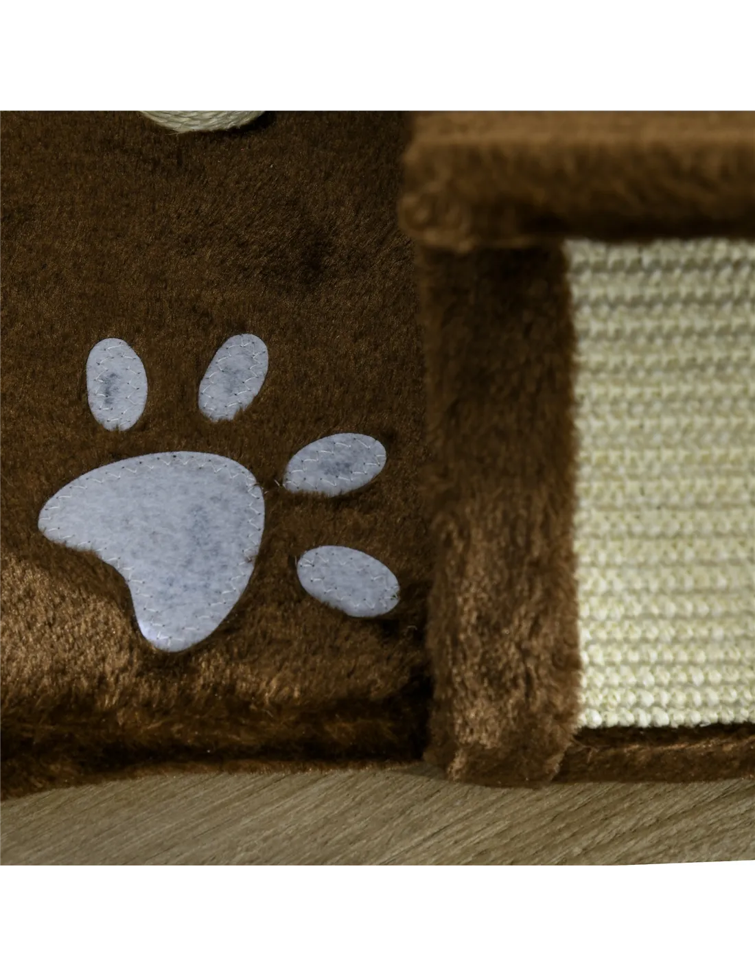 - Robust particle board structure with sisal ropes and soft faux fur