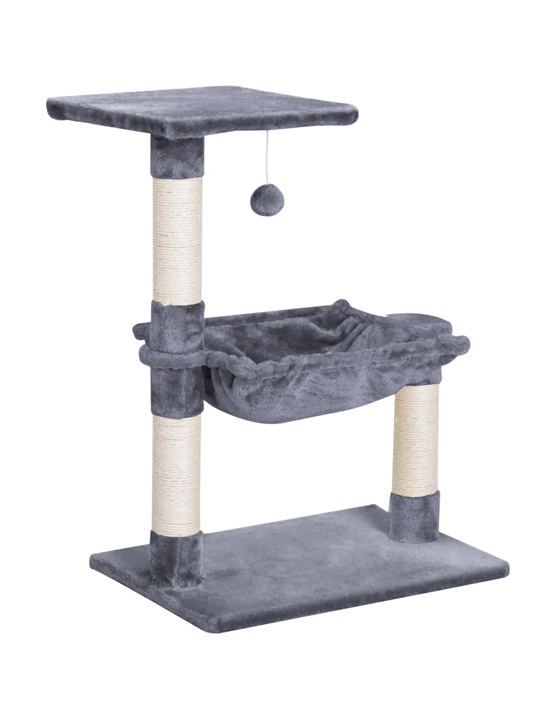 PawHut Cat Scratch Post with Bed Cat Tree for Indoor Cats Sisal Scratching Posts Hammock Kitty Activity Centre Grey