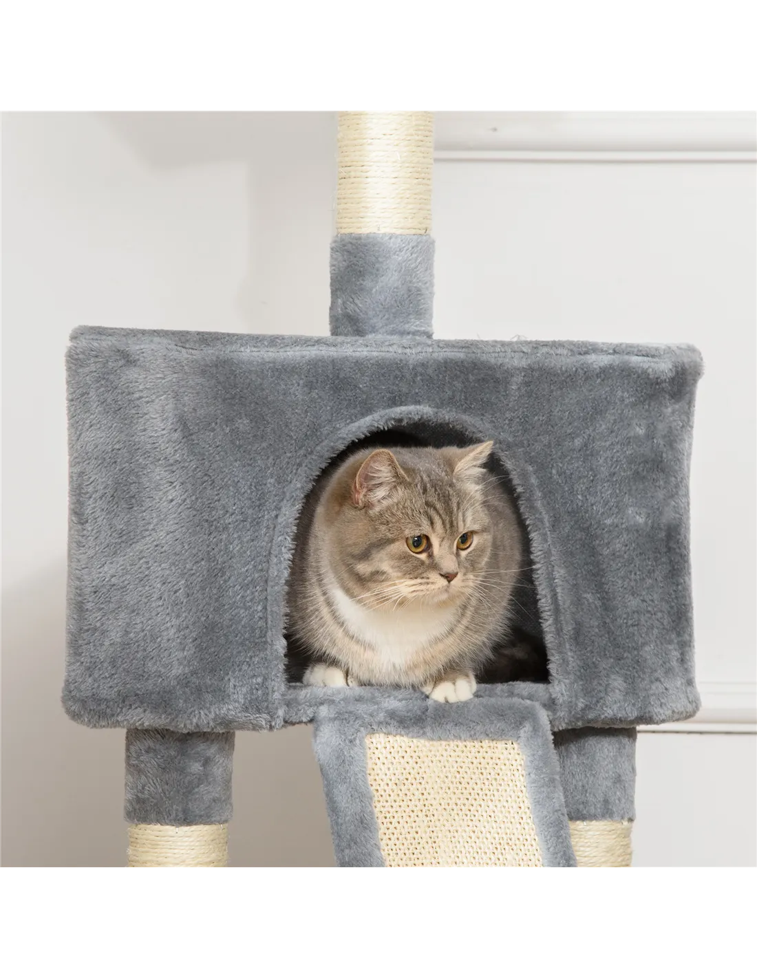 PawHut Corner Cat Tree for Indoor Cats, Kitten Tower with Scratching Post House Ladder Toy - Grey