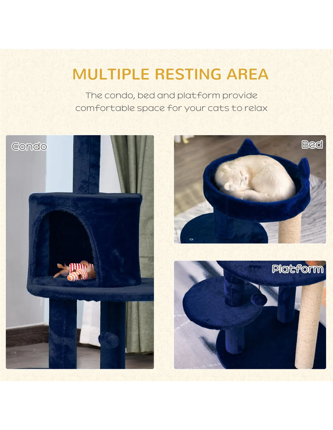 - Multi-level design satisfies your cat's instinct for climbing