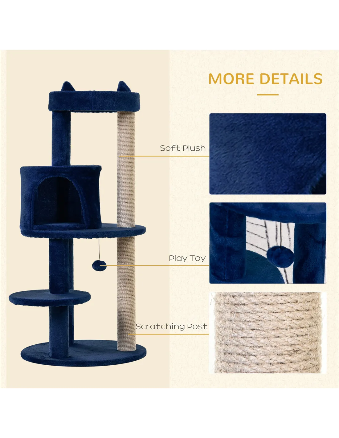 - Material: Particleboard, sisal, plush