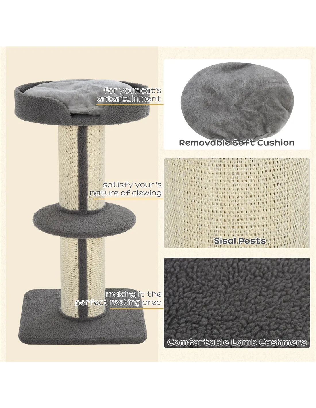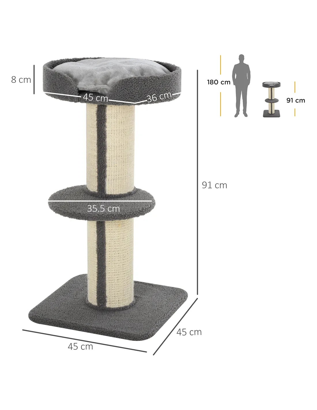 PawHut 91cm Cat Tower Scratching Posts Cat Tree for Indoor Kittens Activity Centre Grey