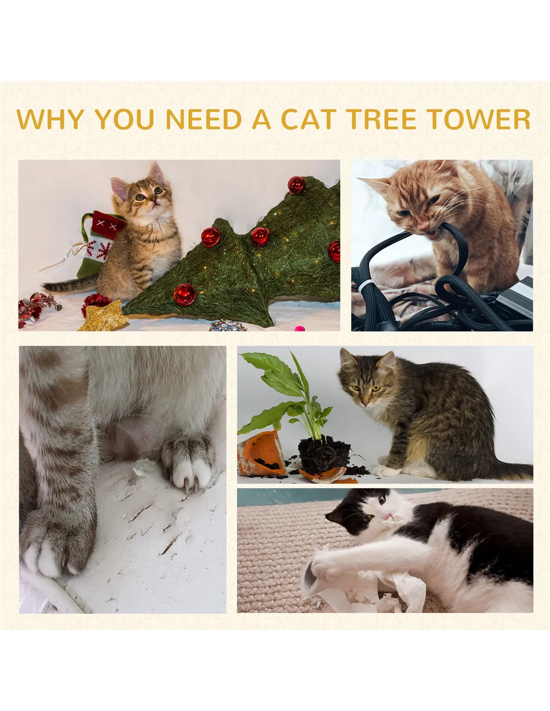 Indulge your feline friend with the PawHut cat tower, a sanctuary of comfort and play. Crafted from solid particle board, this sturdy two-level design features a spacious top basket with a plush pillow, perfect for lounging. The middle perch offers a cozy spot for observation, while the sisal scratching posts keep claws sharp and your furniture safe. Ideal for living rooms or cozy corners, this elegant cat tower enhances your home while providing your cat with a luxurious retreat.