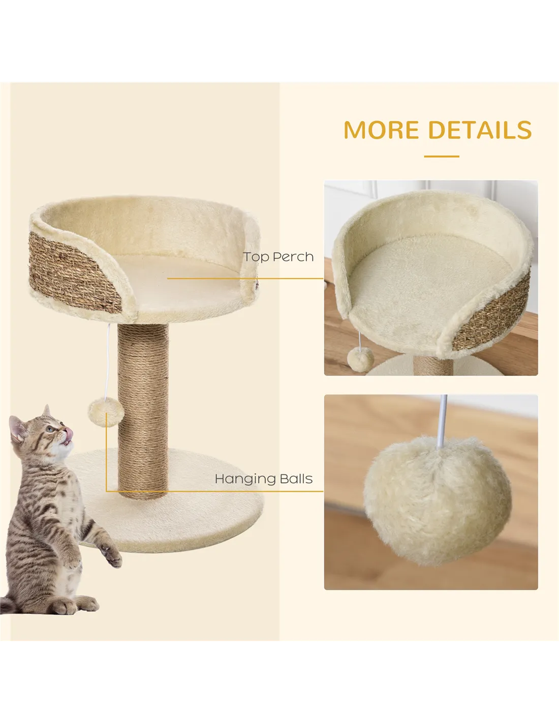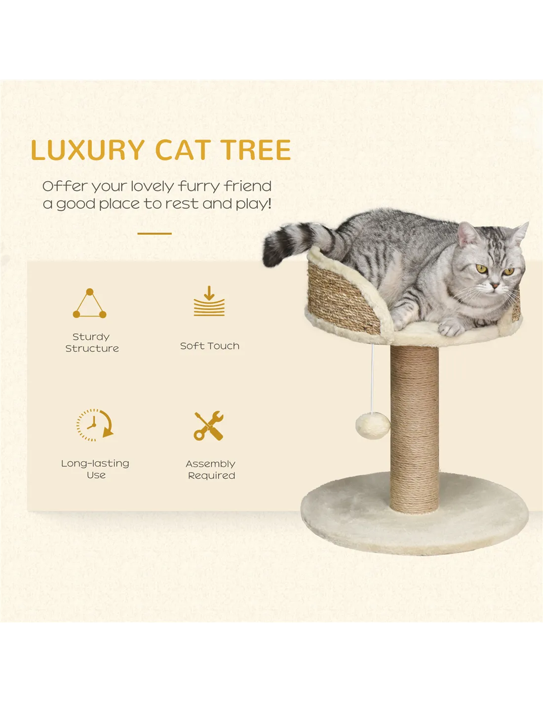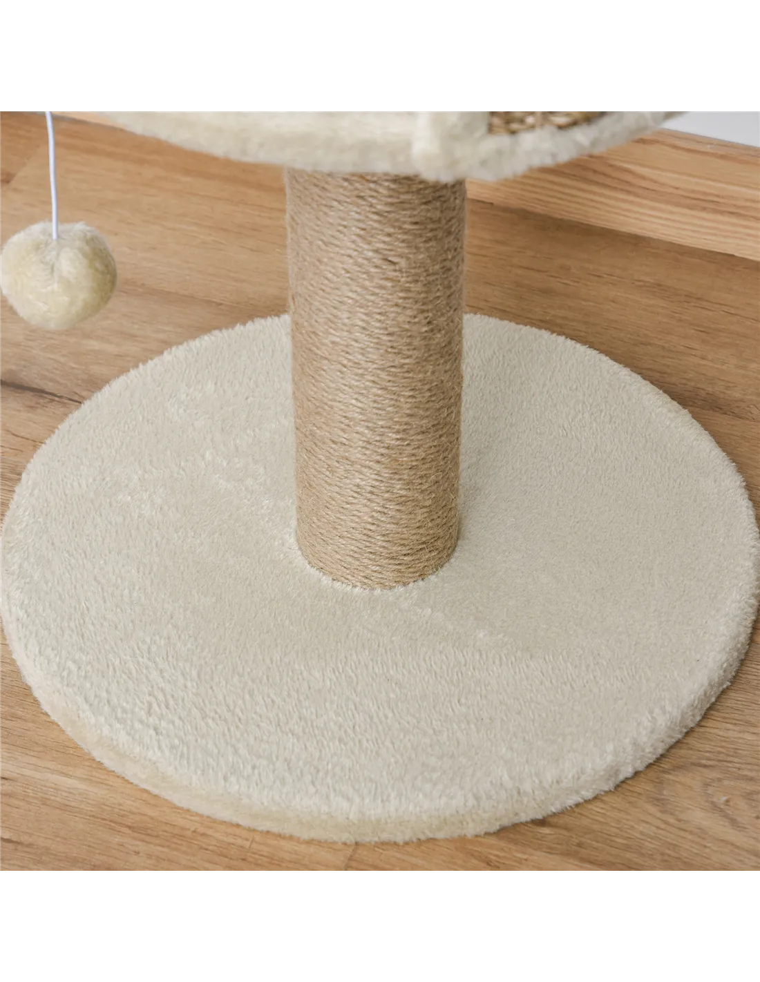 The scratching post is wrapped in natural sisal rope, providing a robust surface that withstands regular use and helps maintain your cat’s claws.