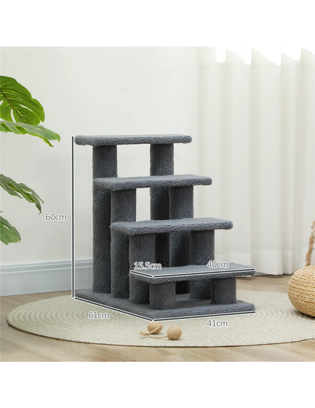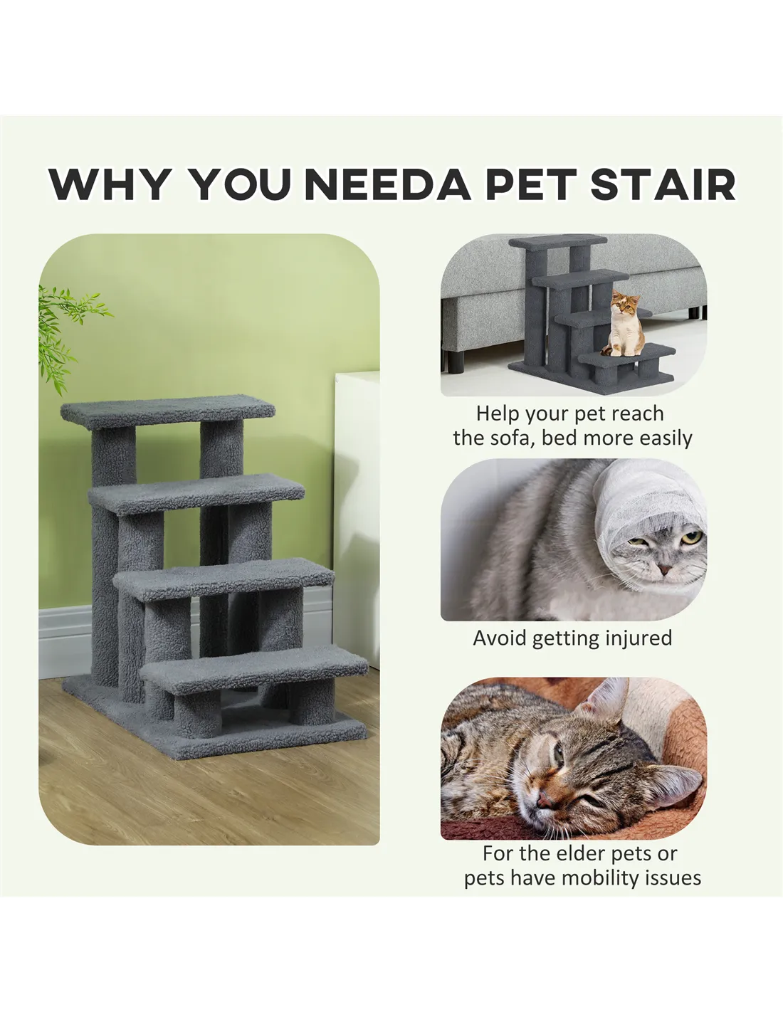 PawHut Dog Steps for Bed 4 Step Pet Stairs for Sofa Dog Cat Climb Ladder 63x43x60 cm Grey