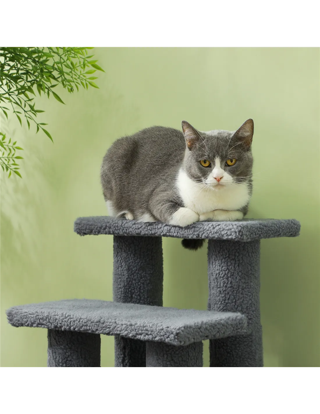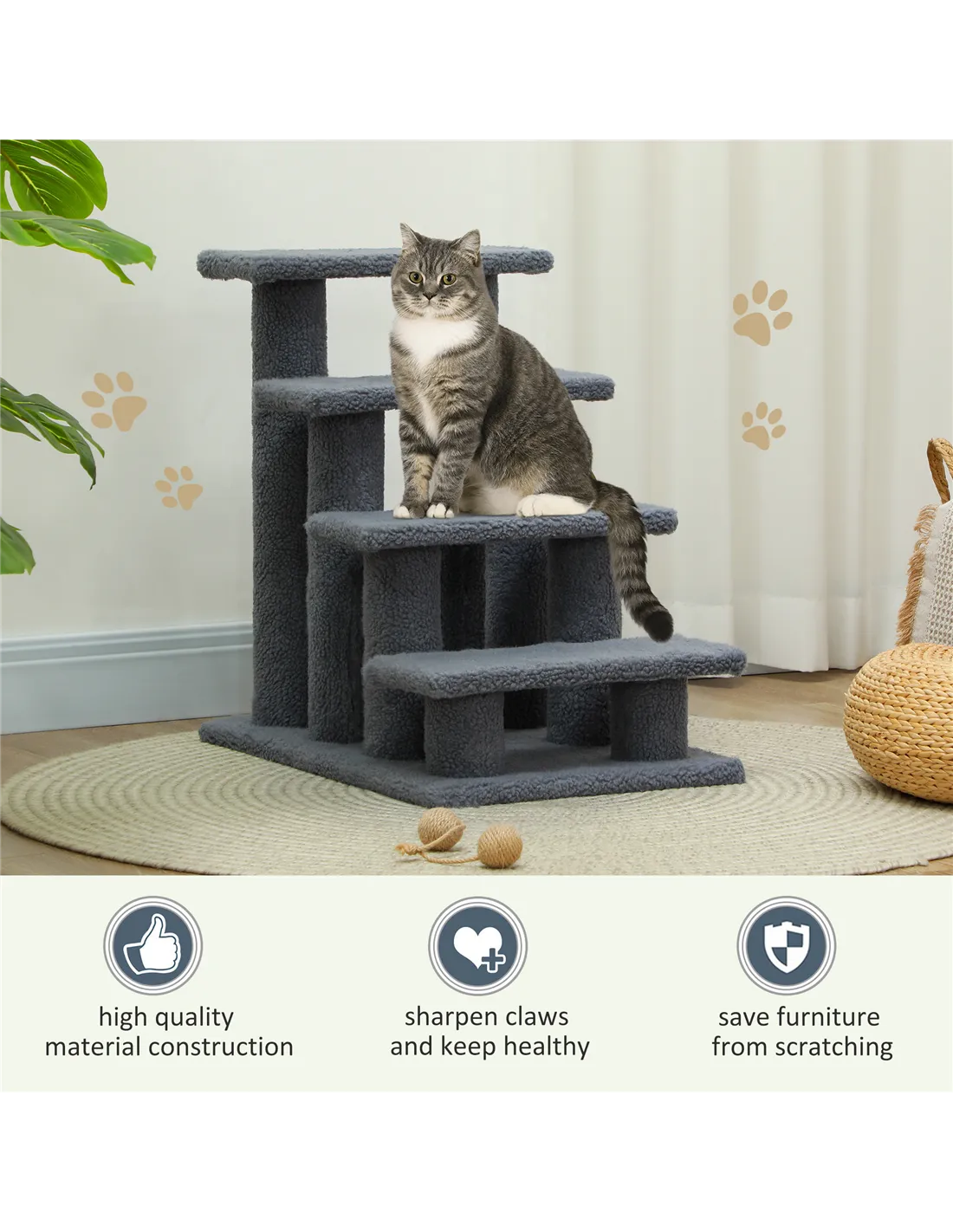 Enhance your pet's comfort with the PawHut 4-step cat scratching post bed, designed for households with small or senior pets. This thoughtfully crafted piece allows your beloved companions to effortlessly reach their favorite spots, whether it's a cozy bed or a sunny window perch. Ideal for senior or arthritic pets, its sturdy engineered wood supports up to 20kg, ensuring safety and stability. The plush faux fleece steps are gentle on paws, inviting your pet to scratch, climb, and lounge.