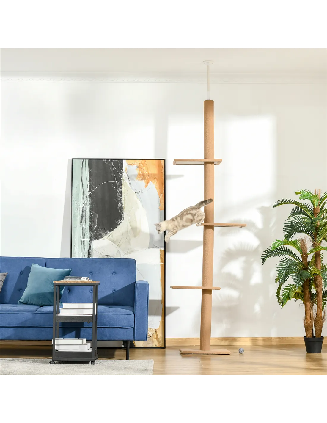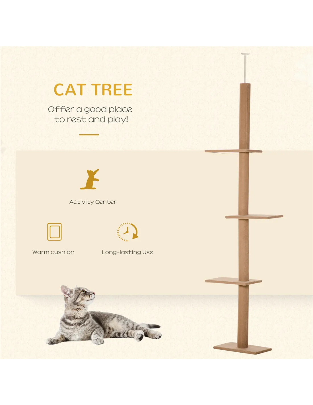 - Ideal for indoor cats who enjoy climbing and exploring vertical spaces, this cat tree fits seamlessly between floor and ceiling, maximising your living area without occupying much floor space.