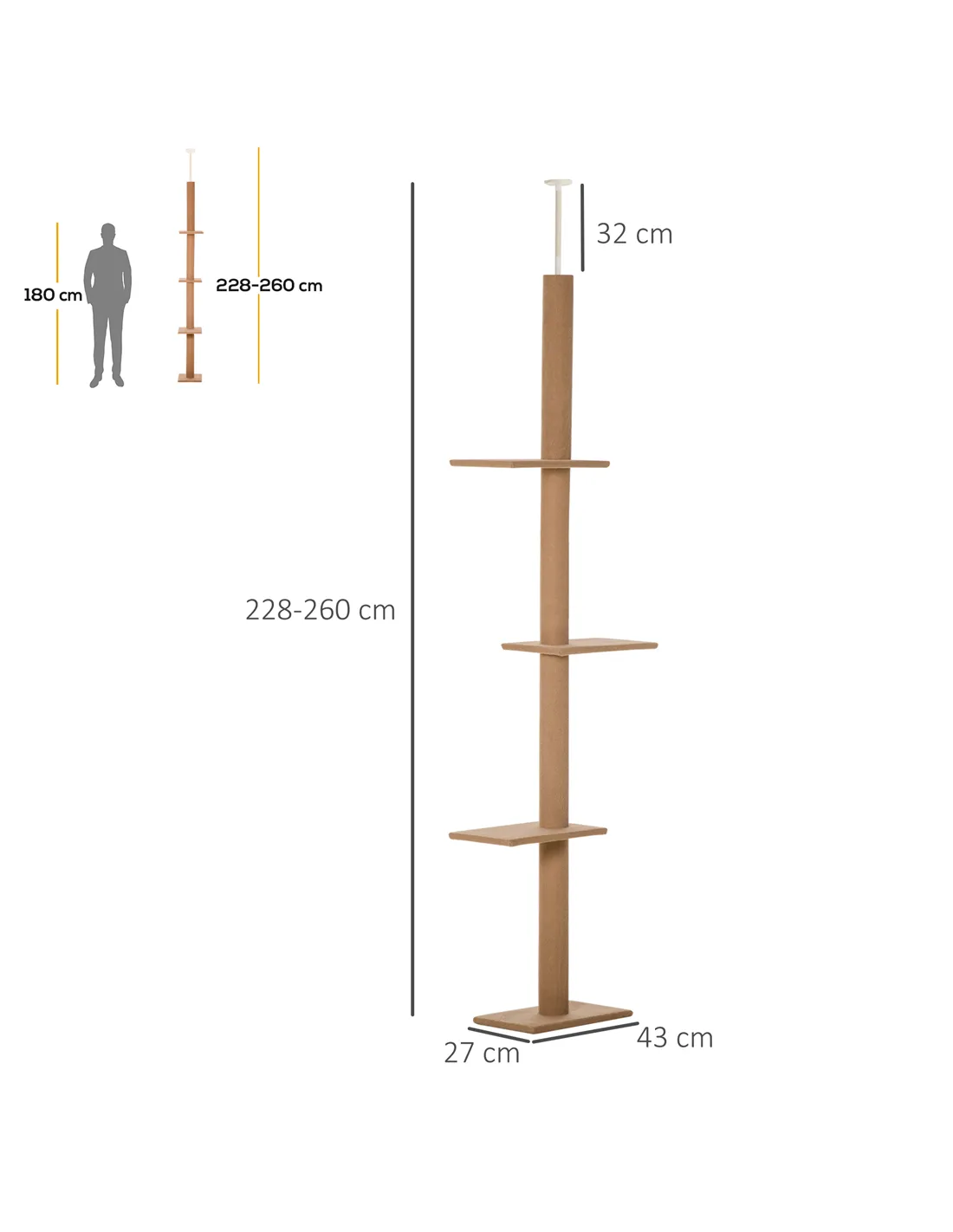 - Adjustable height from 228cm to 260cm ensures a secure fit in rooms with varying ceiling heights, providing stability and safety for your pets.