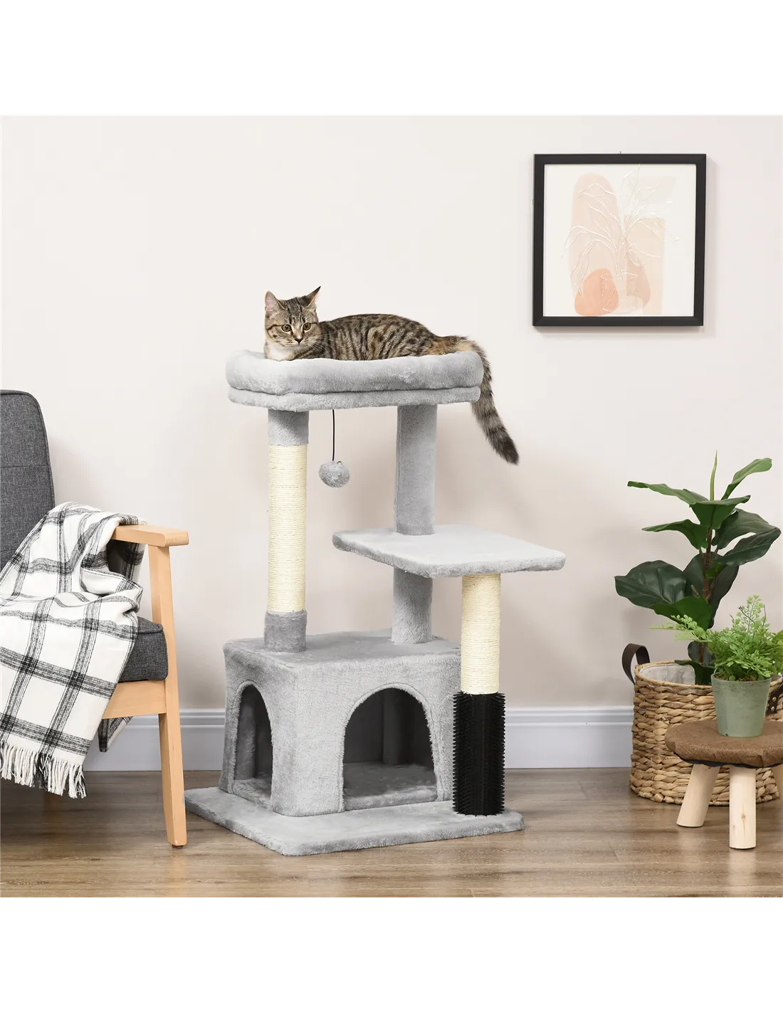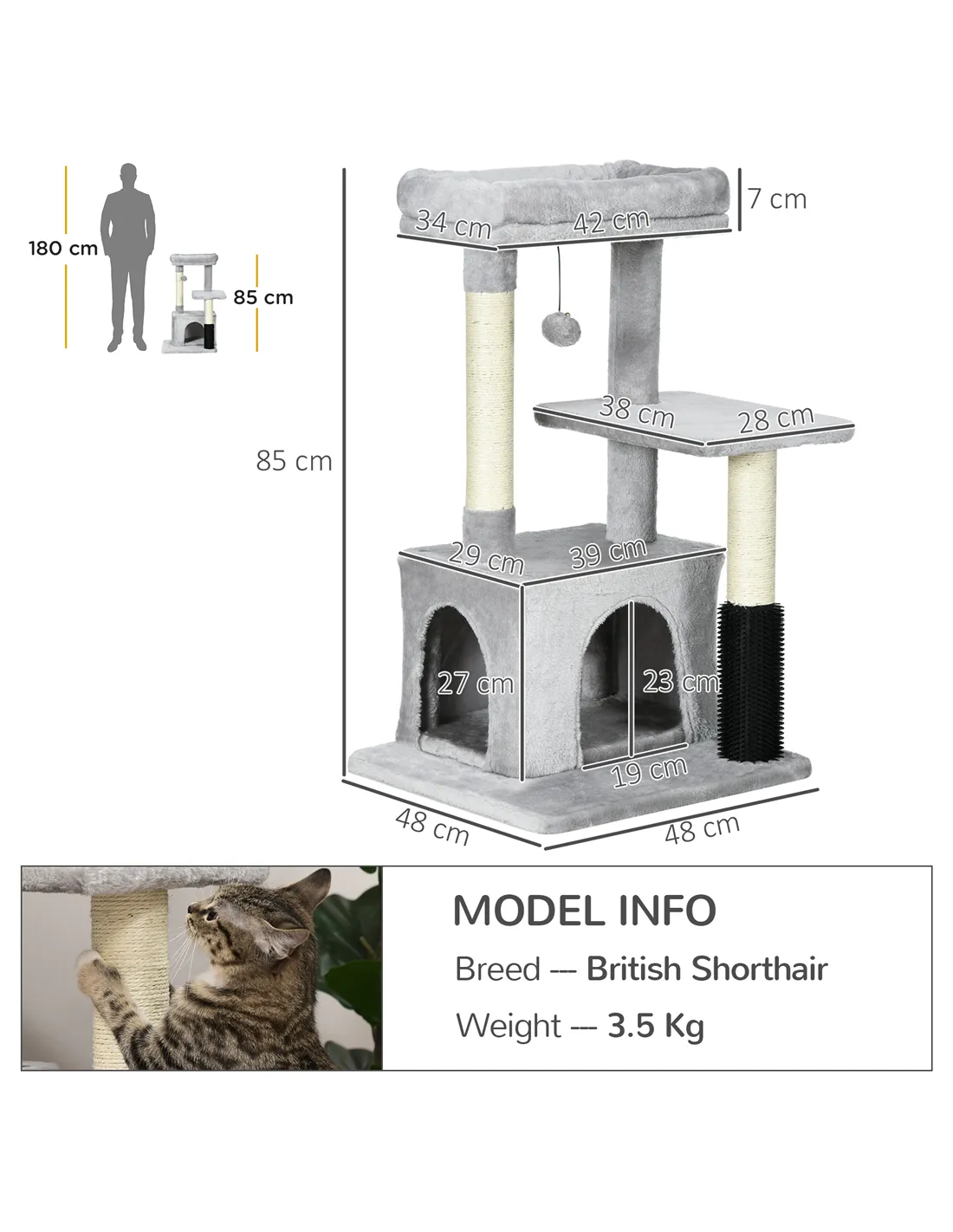 PawHut Cat Tree for Indoor Cats Climbing Tower Kitten Scratch Post Activity Center Kitten with Massage Toy Hanging Ball Bed Condo Perch 48 x 48 x 85cm Grey