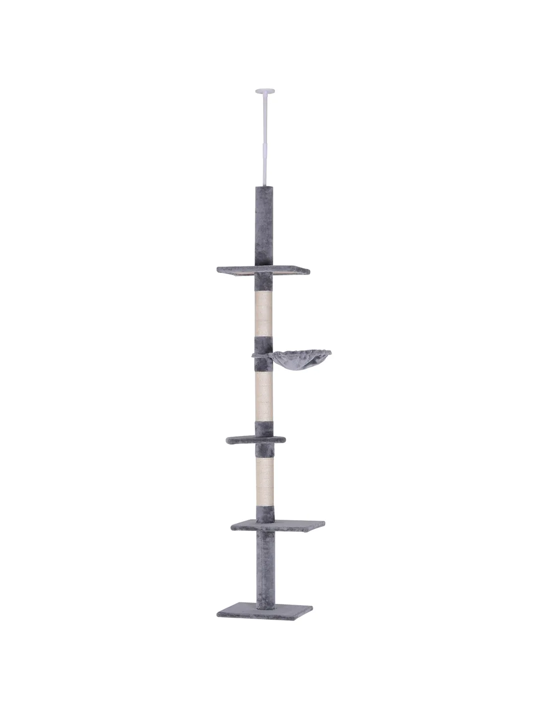 PawHut Floor to Ceiling Cat Tree Height Adjustable 230-260cm, 5-Tier Cat Tower with Scratching Post, Hammock, Perches, Climbing Activity Centre for Indoor Kittens, Grey