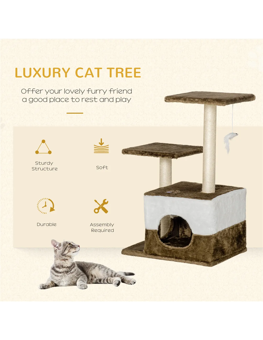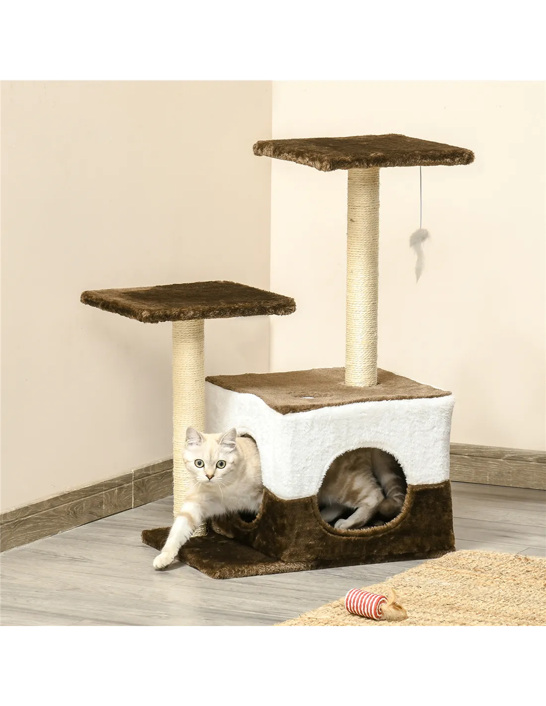 PawHut Cat Tree Tower for Indoor Cats Kitten House Scratching Posts with Condo Perch Interactive Mouse Toy, 45 x 33 x 70 cm, Brown