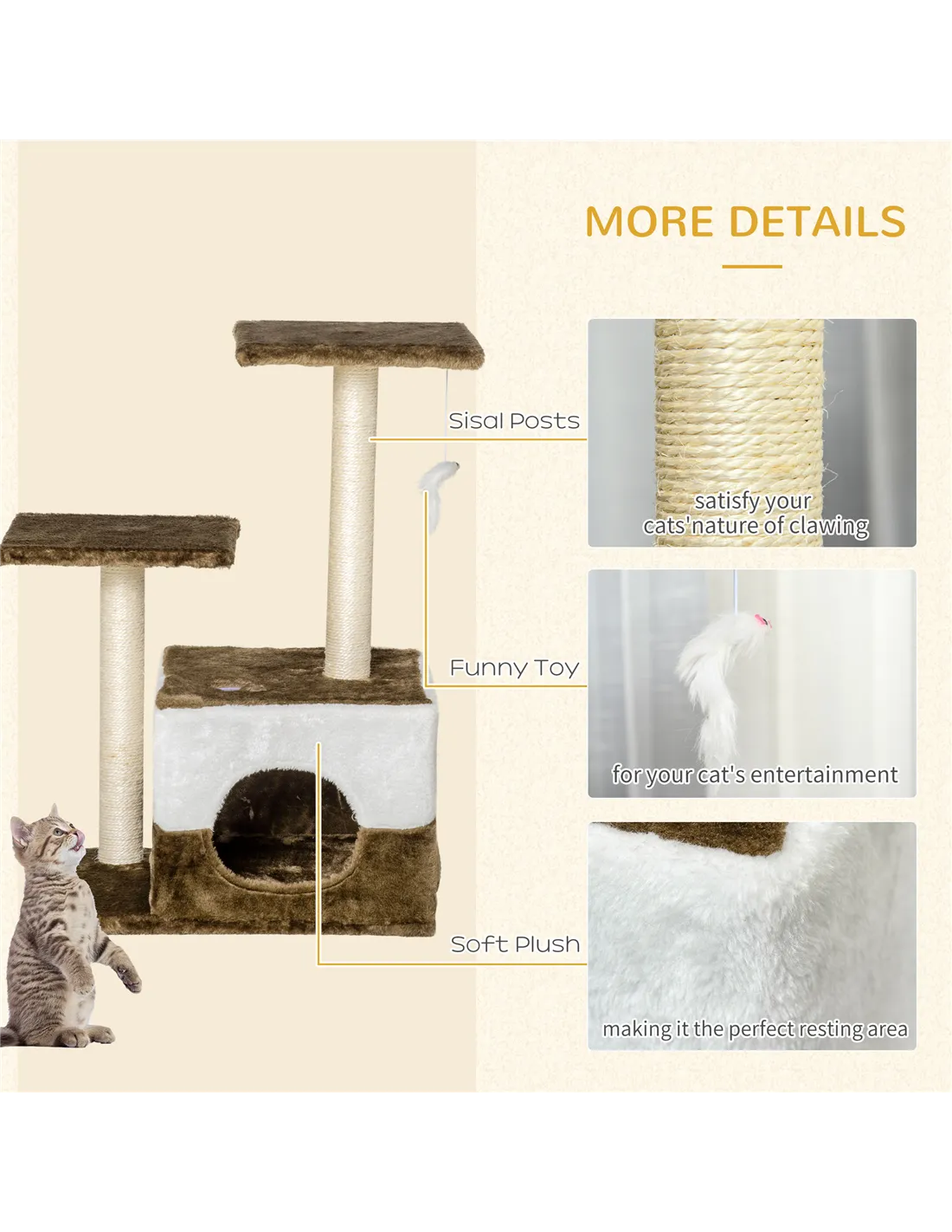 - Material: Particleboard, Short Plush, Sisal