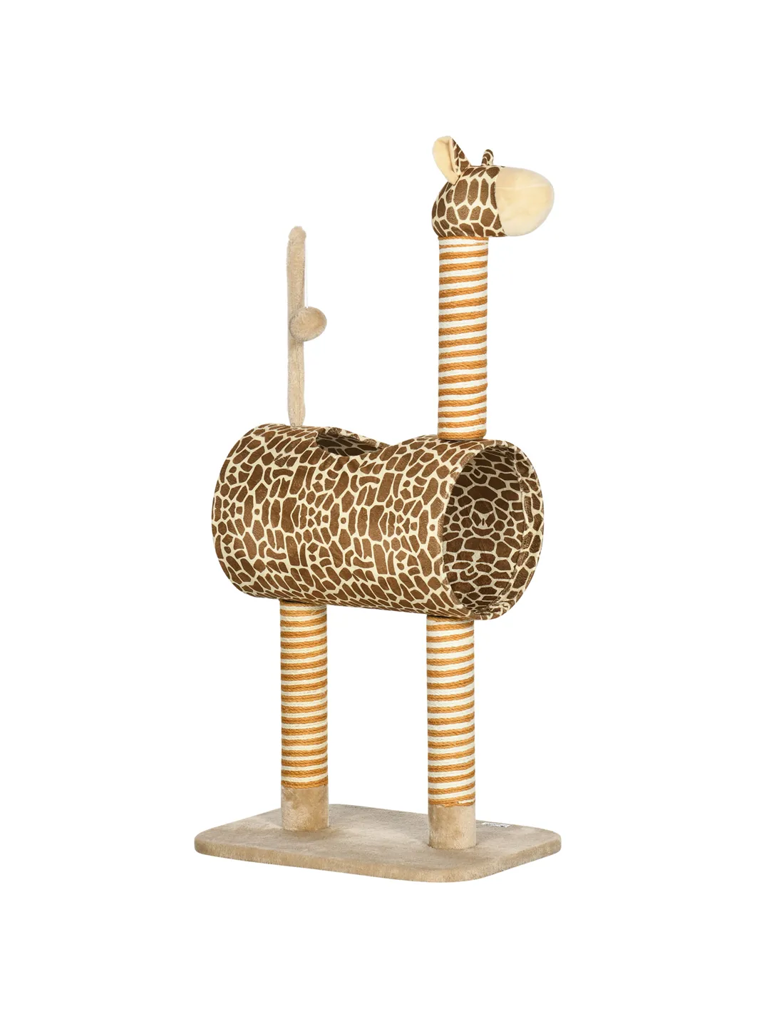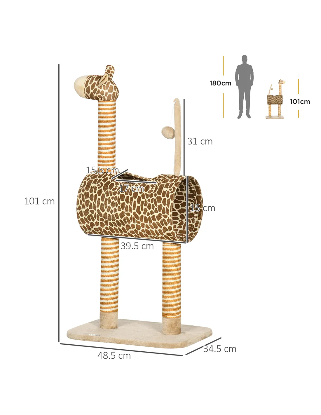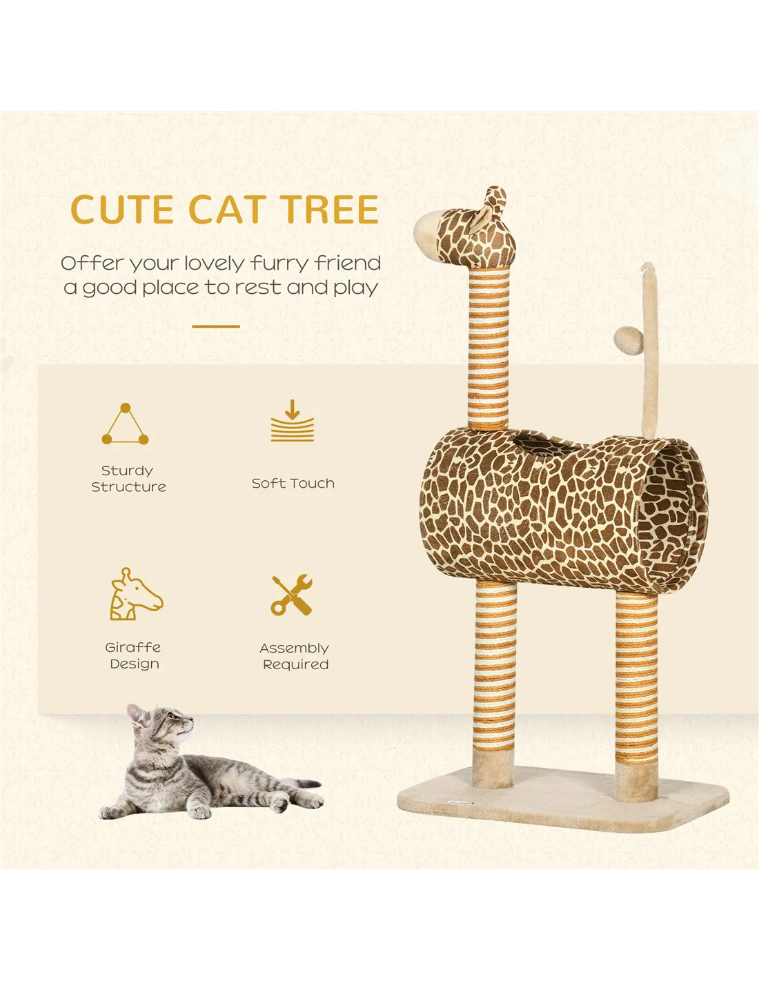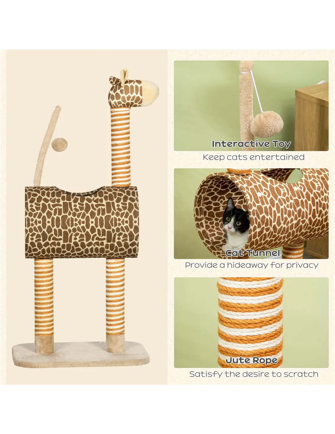 PawHut Giraffe-Designed Cat Tree, with Scratching Posts, Cat Tunnel, Toy Ball - Beige