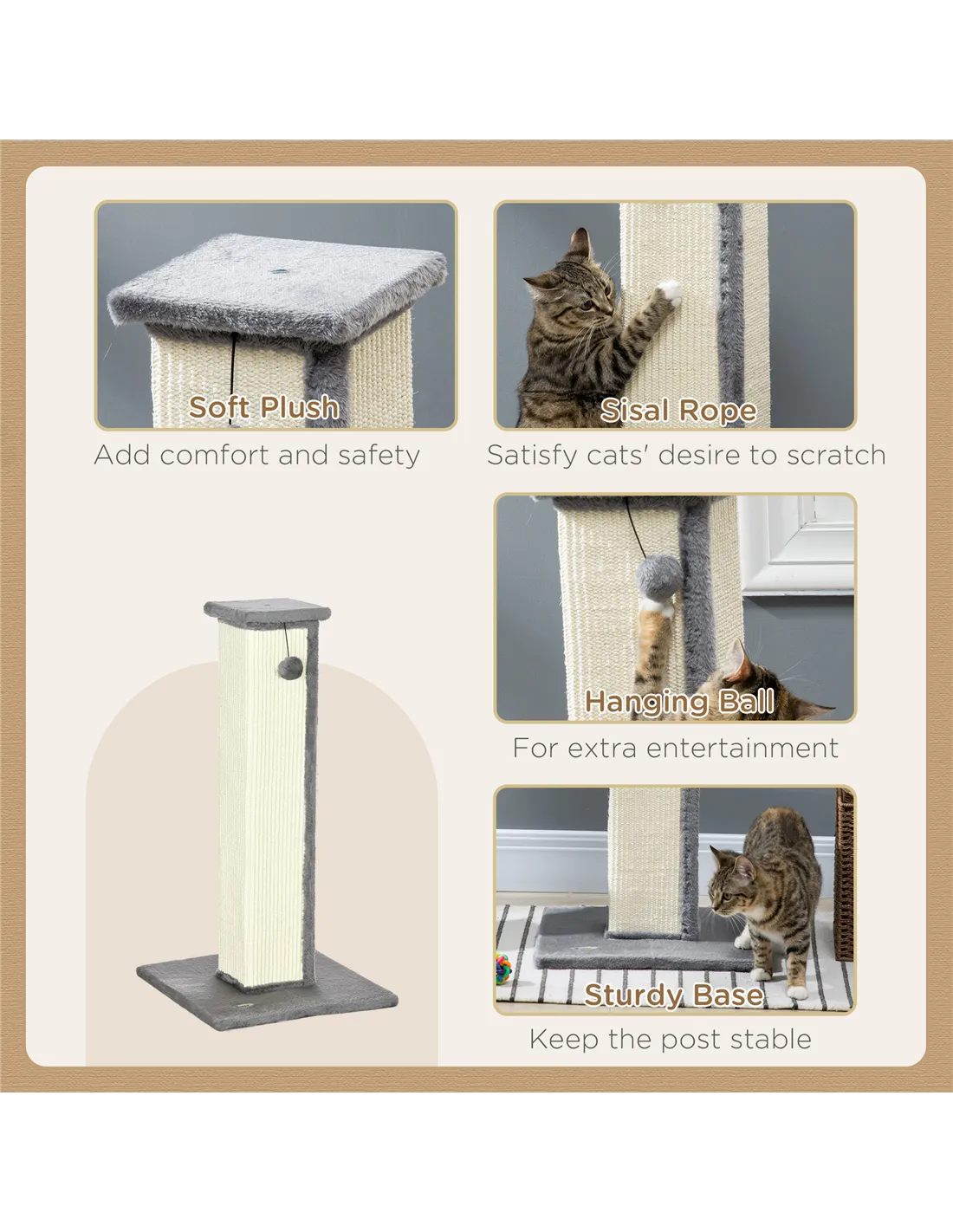 - Scratching post: 76H x 14.5L x 14.5Wcm