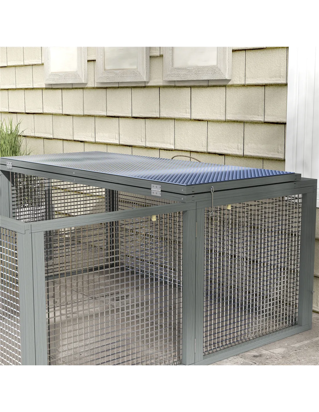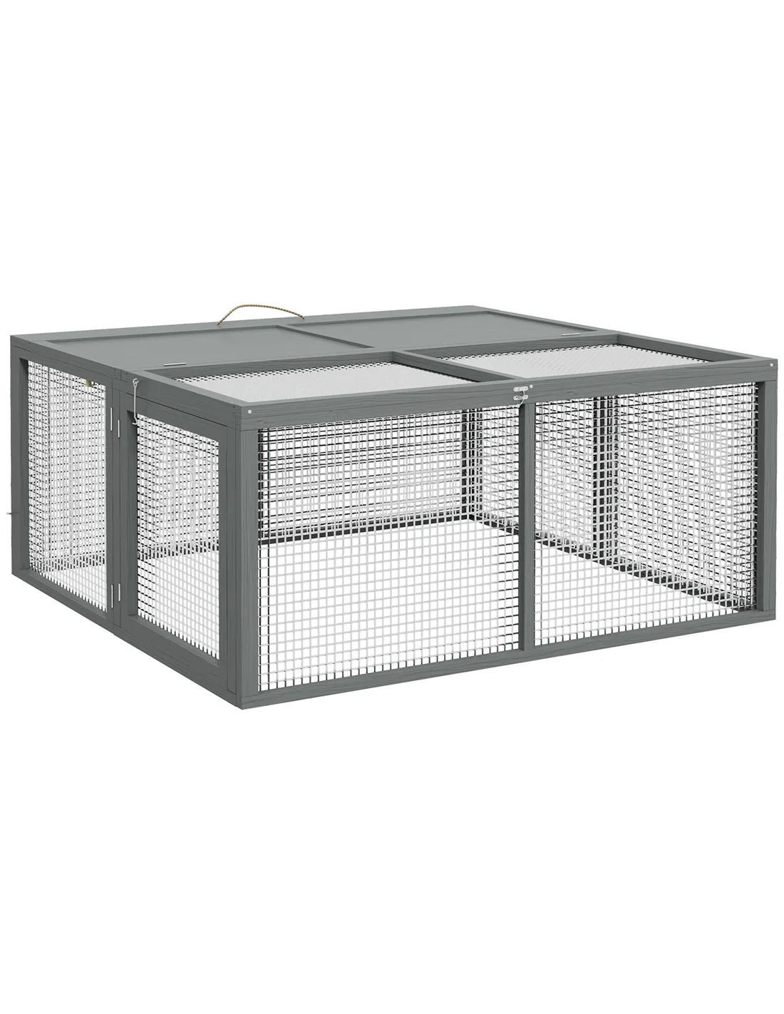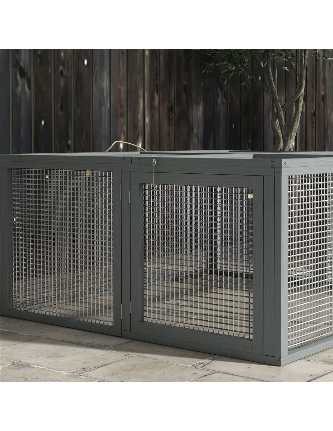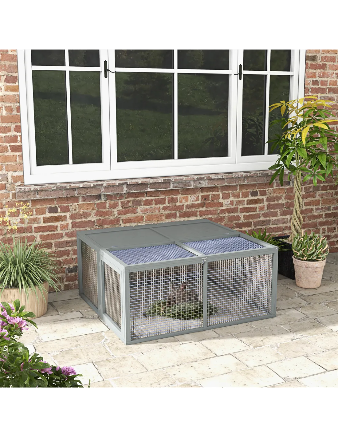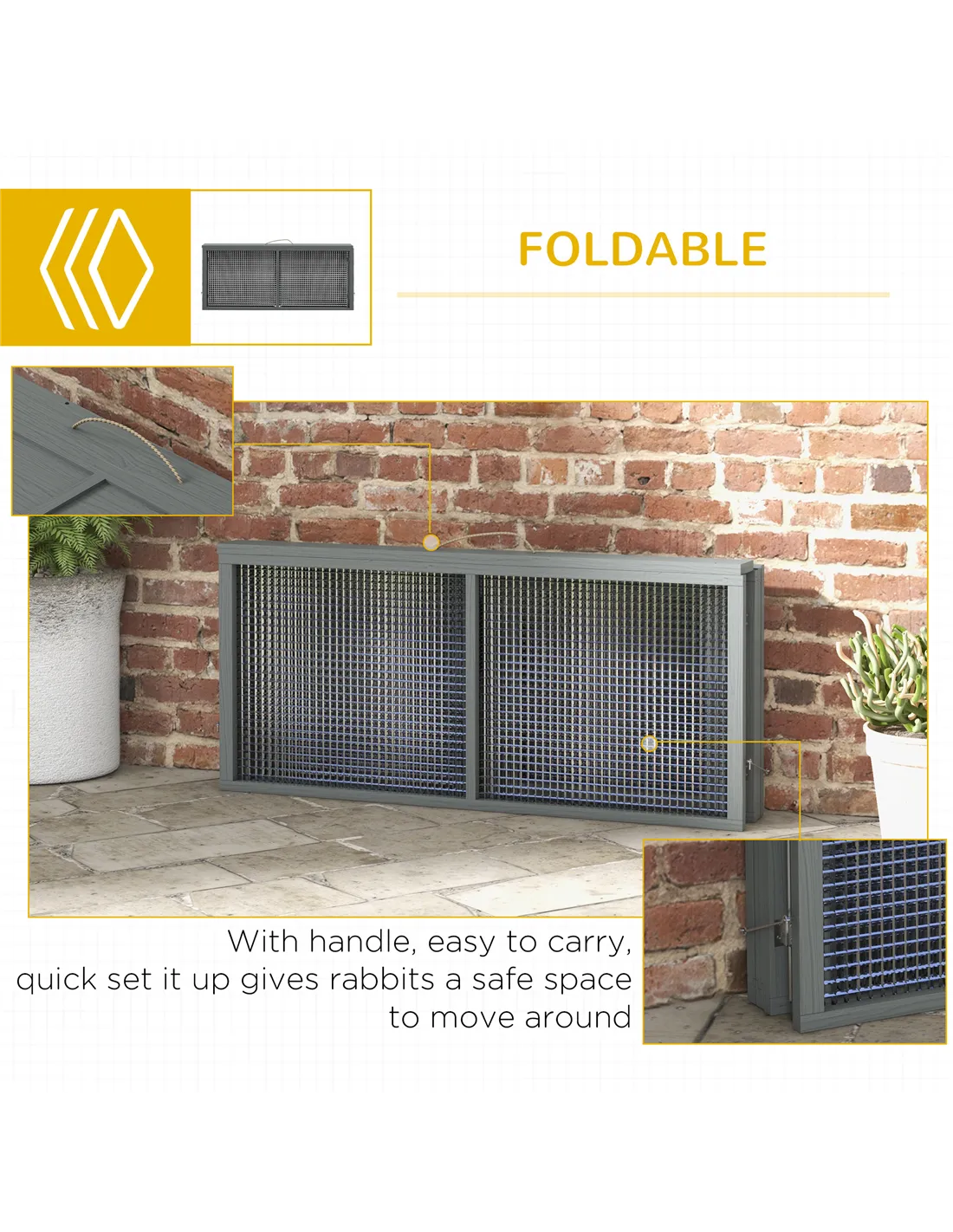 PawHut Wooden Folding Rabbit Hutch, for 2-3 Rabbits - Grey