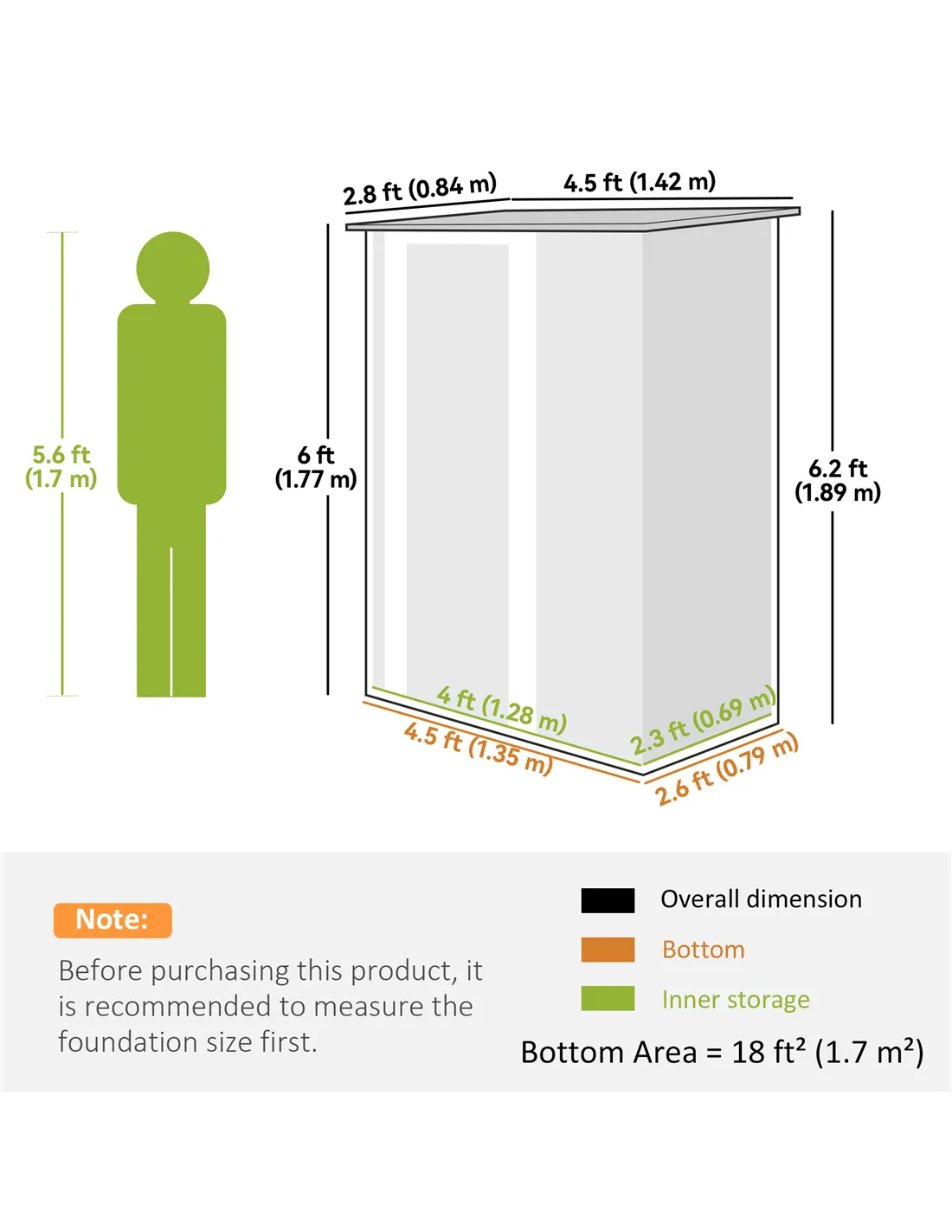 - Bottom Size: 135W x 79D cm (1.07 m²)