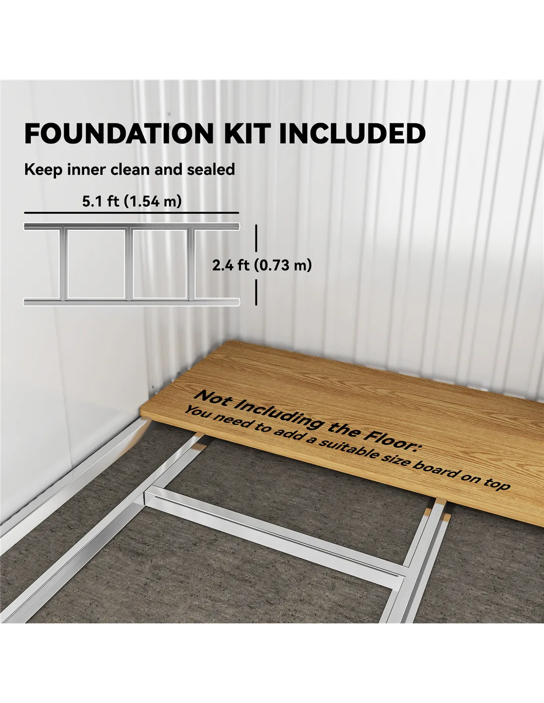 - Includes a foundation kit to keep storage items elevated