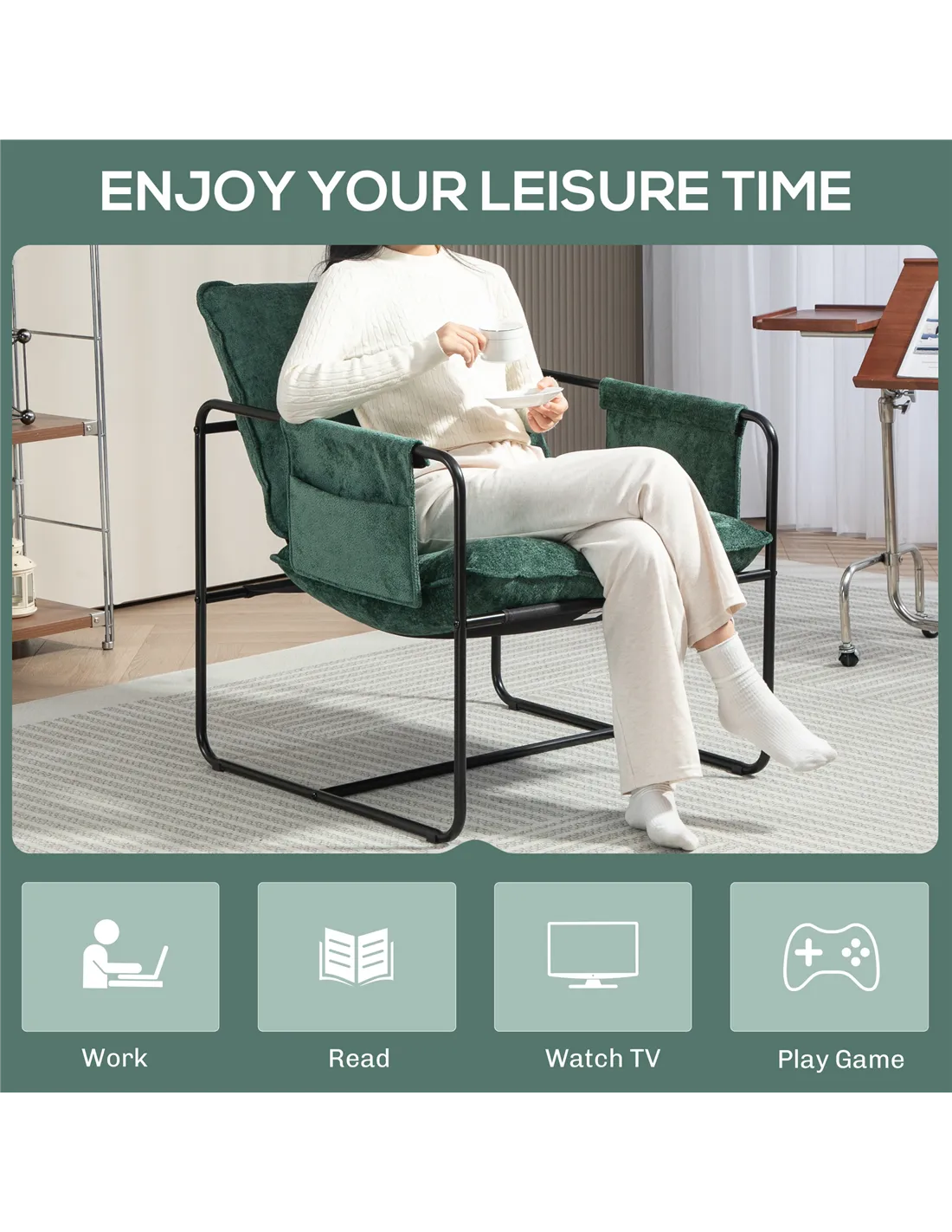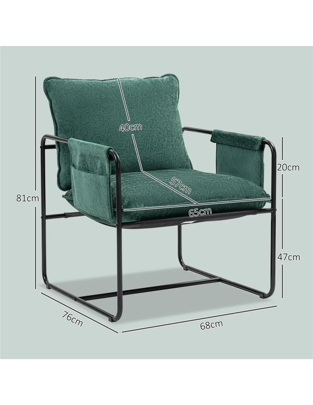 HOMCOM Minimal Padded Accent Chair, with Pockets - Green