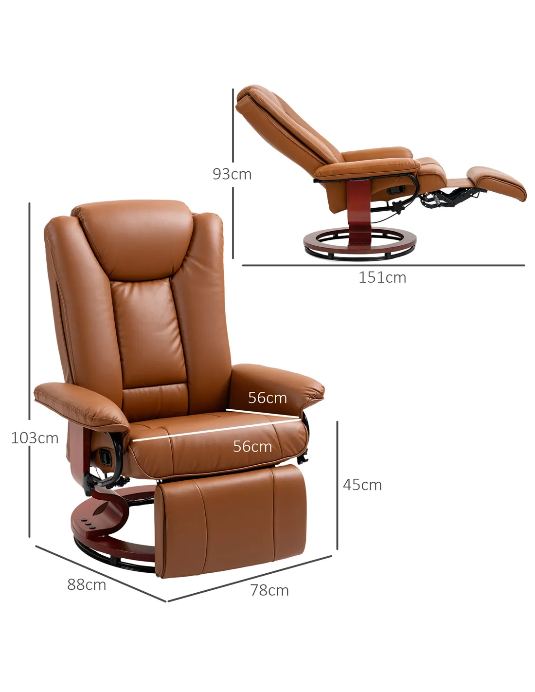 - Fully Reclining Dimensions: 76W x 151D x 93H cm
