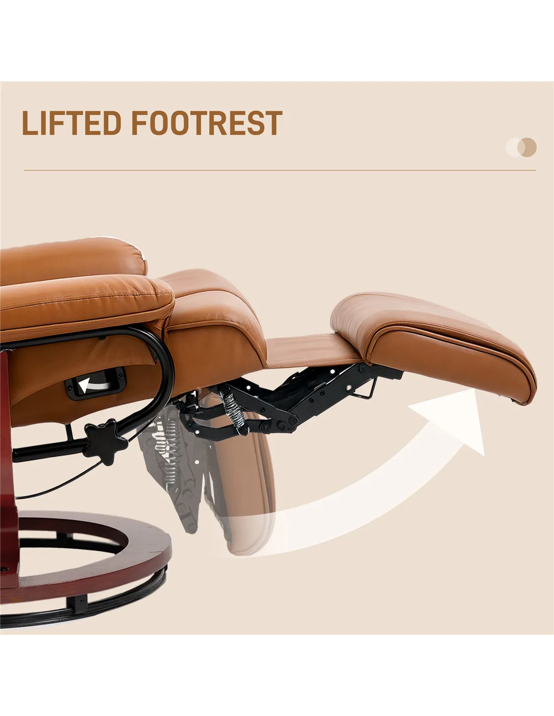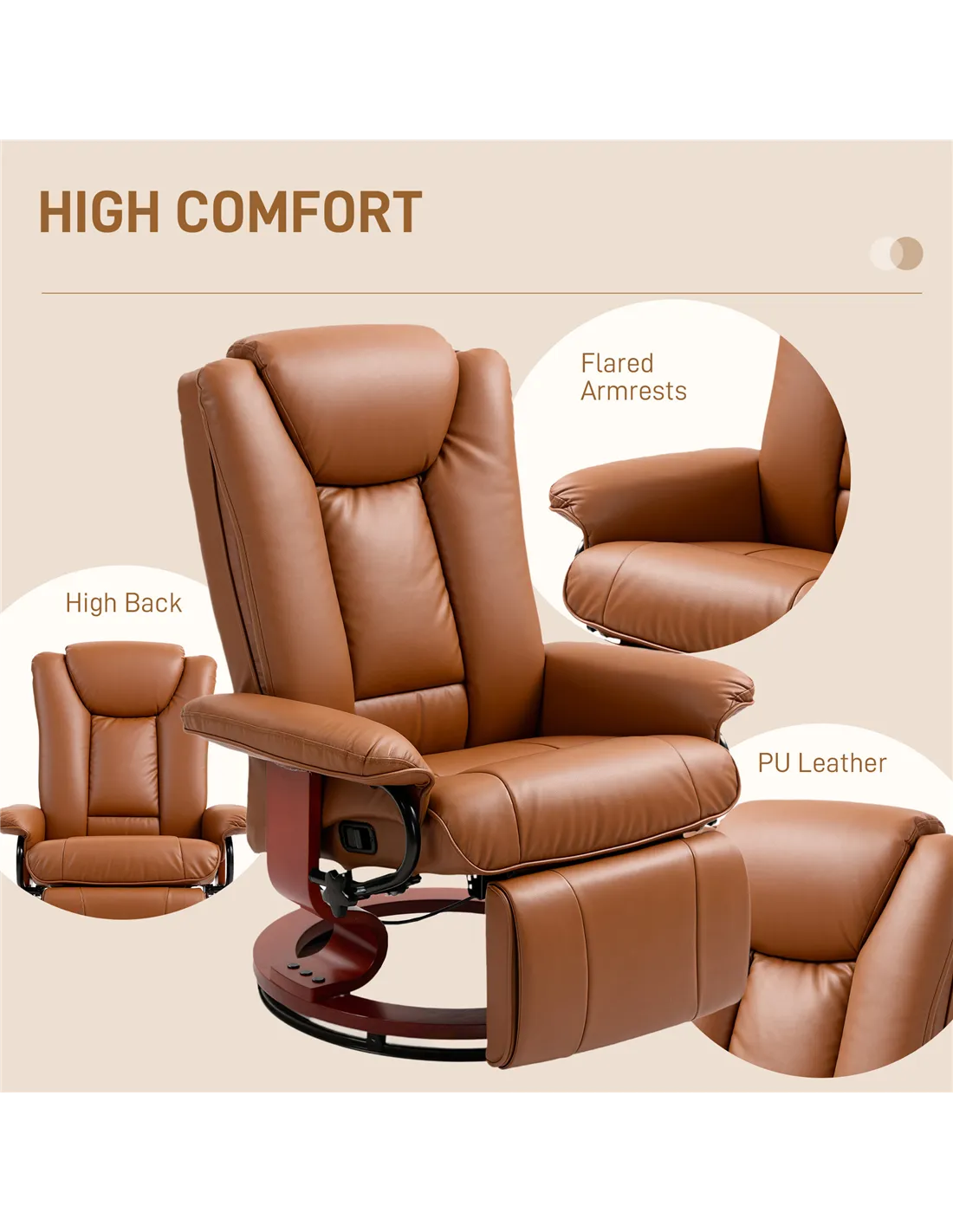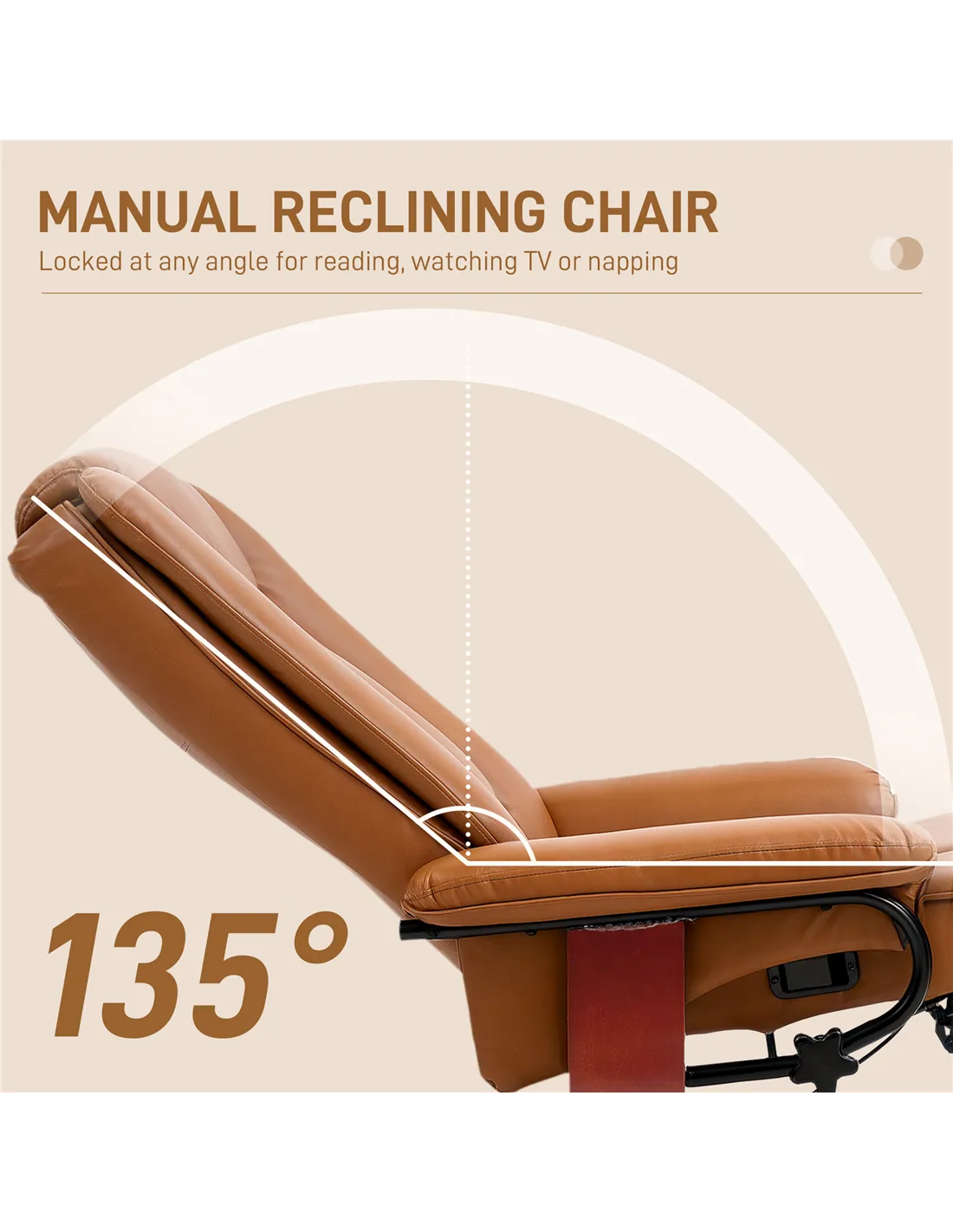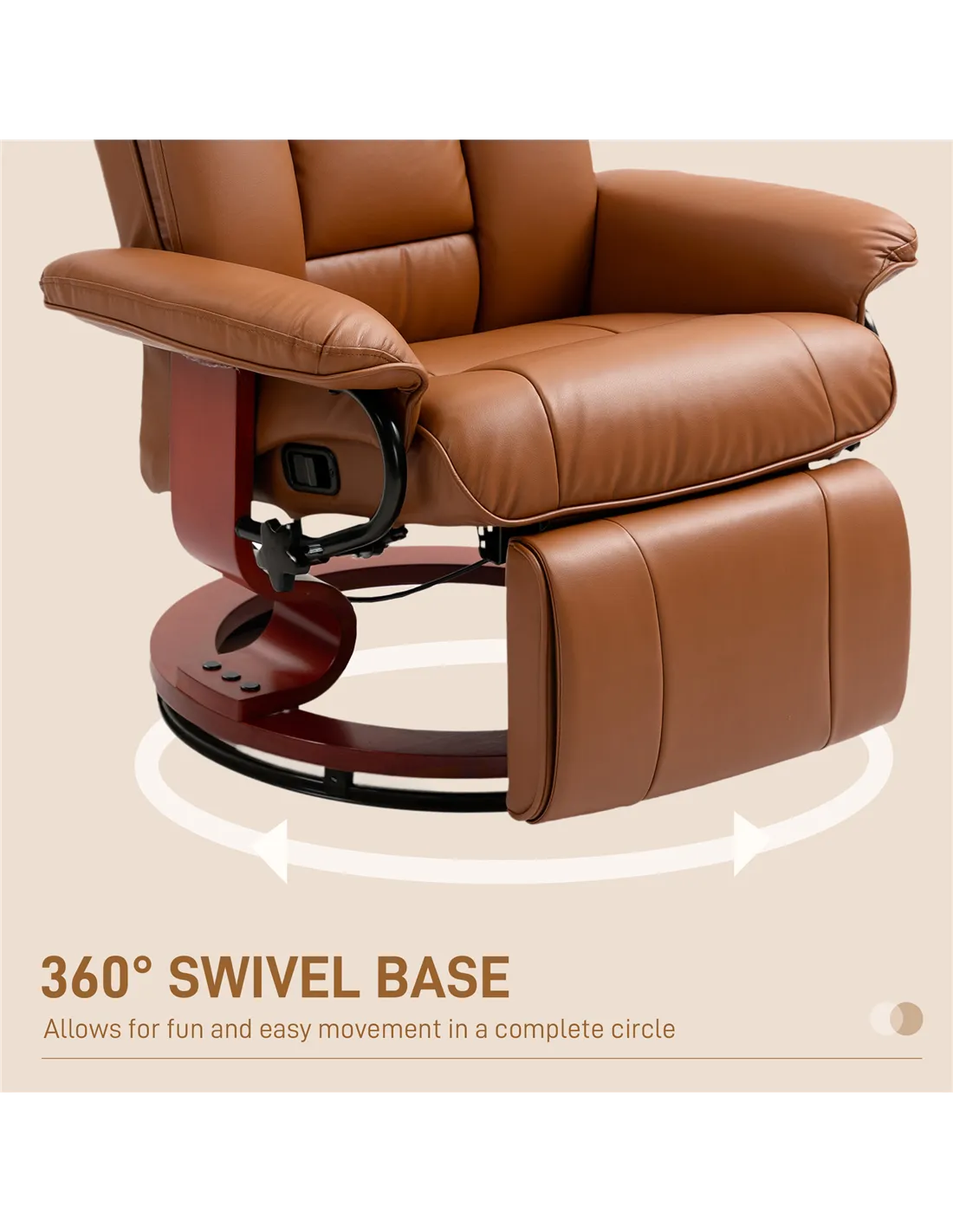 Relaxation whenever, with this HOMCOM swivel recliner. The 135° reclining back allows you to lie back to a position you want, with a footrest to elevate your lower body - full body relaxation. Filled with comfortable foam padding, complete with smooth and stylish faux leather upholstery.