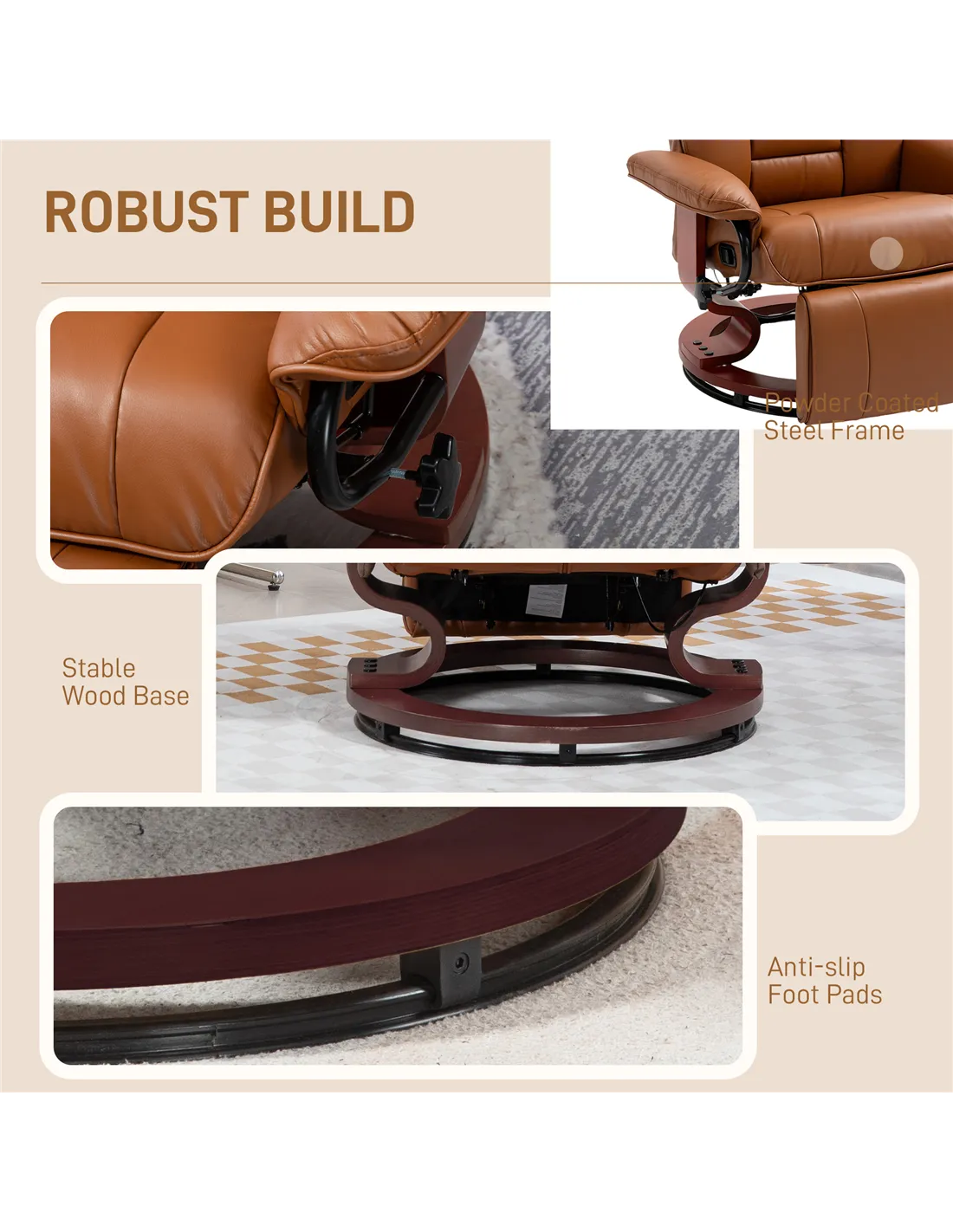 - Materials: PU Leather, Foam, Multi-layer Board, Steel