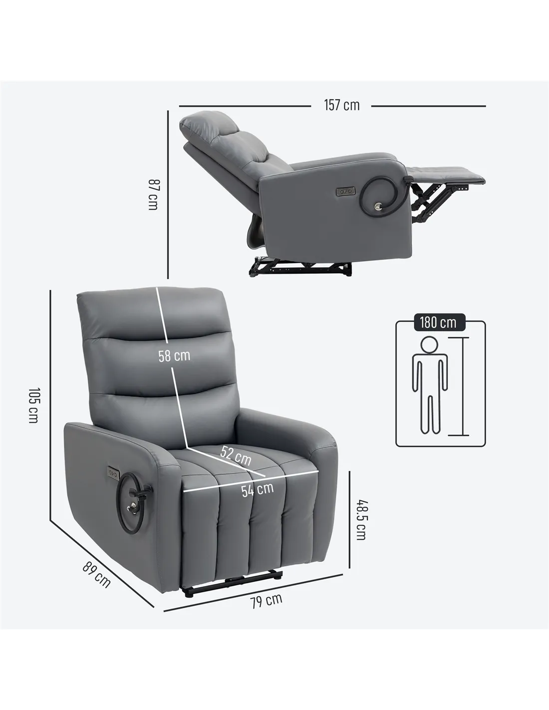 - Overall Dimensions: (Reclined) 79W x 157D x 87H cm