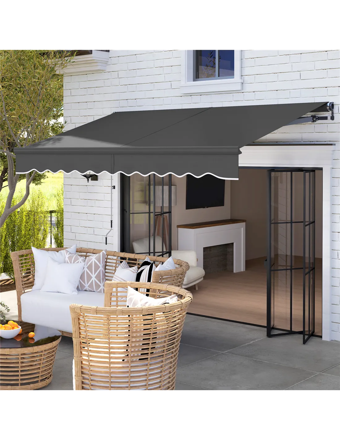 The Outsunny electric awning is a versatile addition to any British home, ideal for creating shaded outdoor spaces. Perfectly suited for gardens, patios, decks, or above windows and doors, it provides reliable sun protection with its UV30+ canopy. Whether you want to enjoy a sunny afternoon without glare or shield your outdoor furniture from fading, this retractable awning offers flexible coverage. Its adjustable tilt angle from 45° to 85° allows you to block sunlight or light rain throughout the day. Thanks to the remote control and manual crank options, adjusting the awning to suit changing weather conditions is effortless. The sleek dark grey aluminium frame complements modern outdoor aesthetics, enhancing your home’s exterior while providing practical shelter.