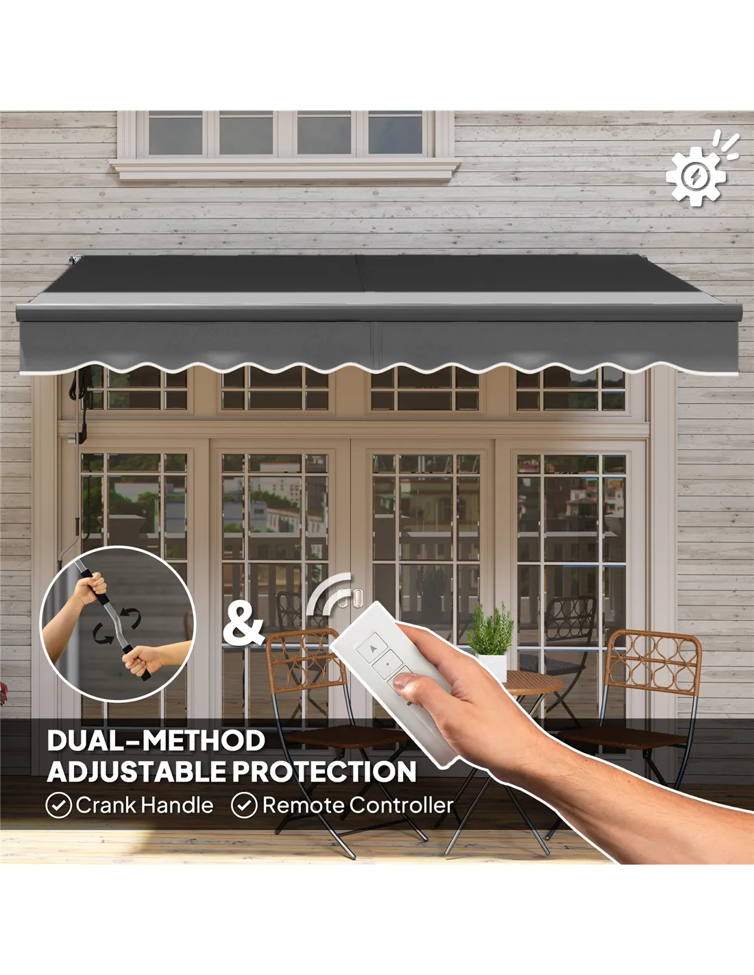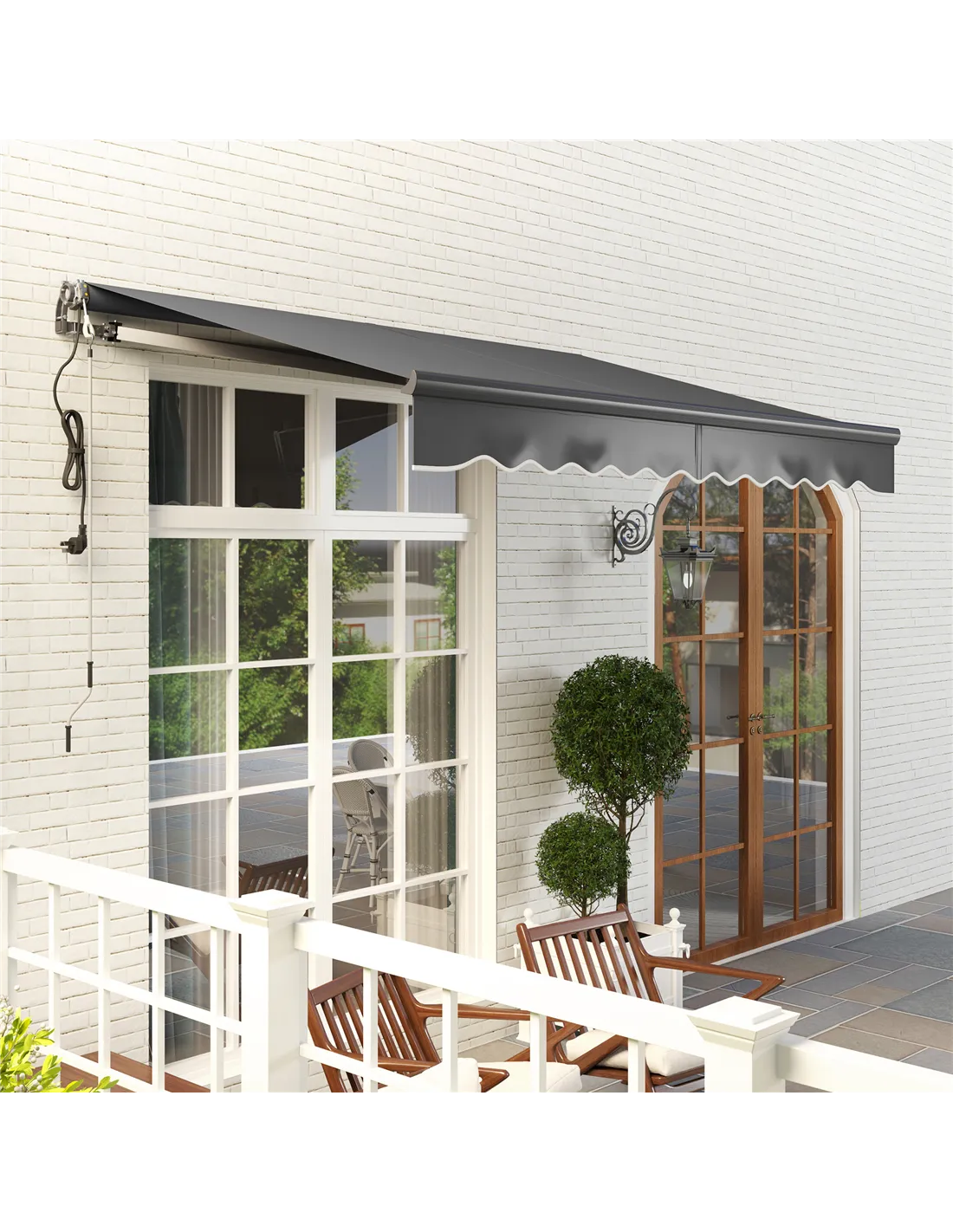 Outsunny 3 x 2.5m Electric Awning with Remote Controller, Aluminium Frame DIY Retractable Awning, UV30+ Sun Shade Canopy for Garden Patio Deck Door Window, Dark Grey