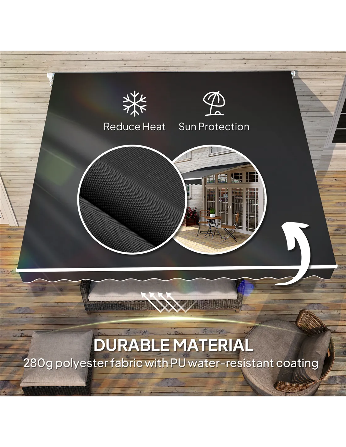 Outsunny 3 x 2.5m Garden Patio Manual Awning, Retractable Canopy Sun Shade Shelter with Fittings and Crank Handle, Black