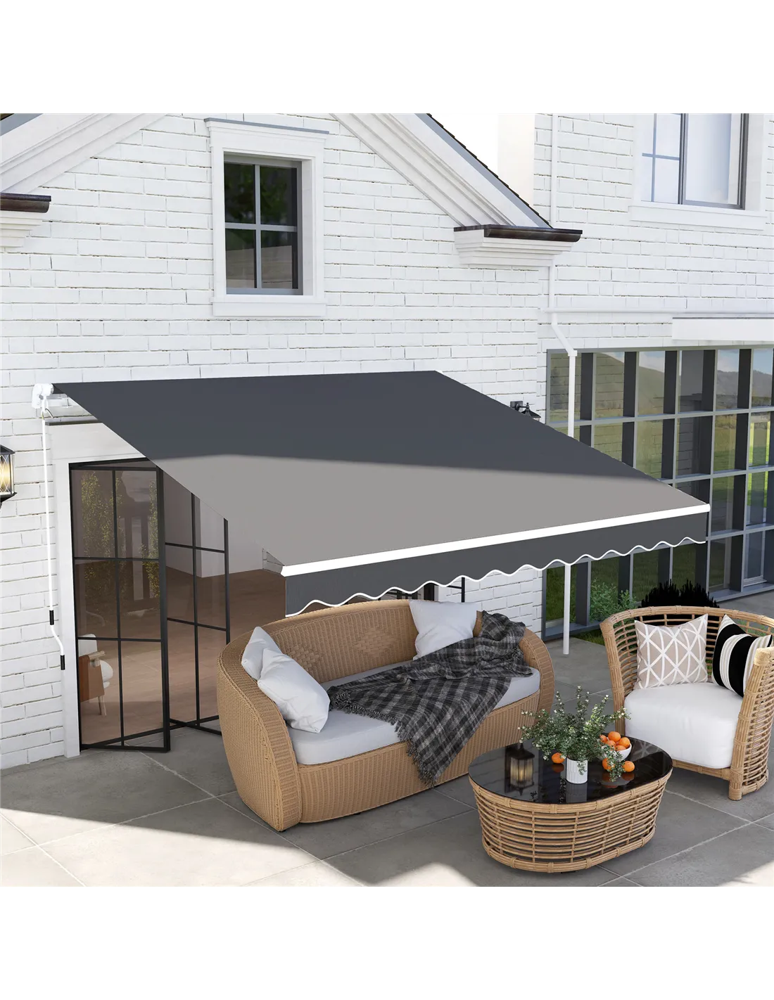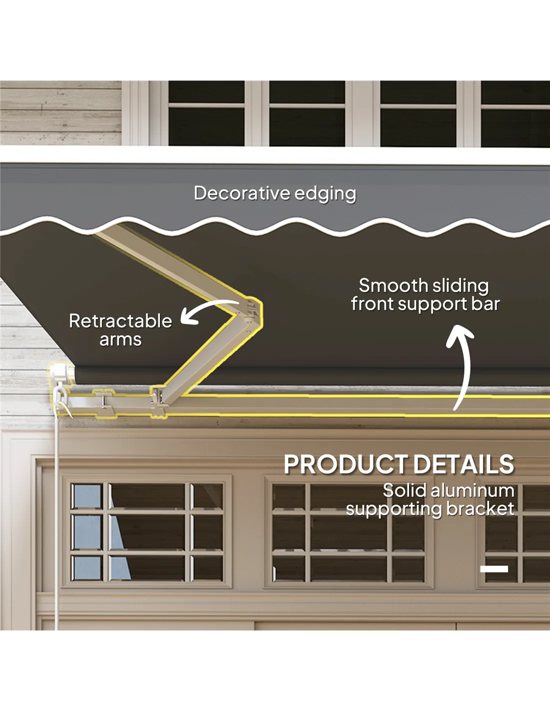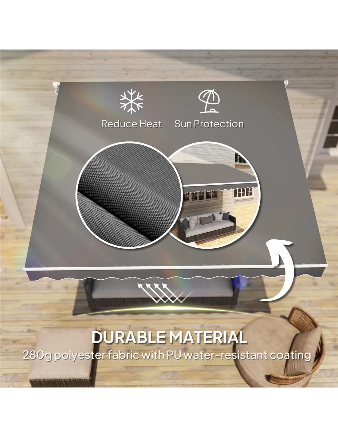 Outsunny 3 x 2.5m Garden Patio Manual Awning, Retractable Canopy Sun Shade Shelter with Fittings and Crank Handle, Dark Grey