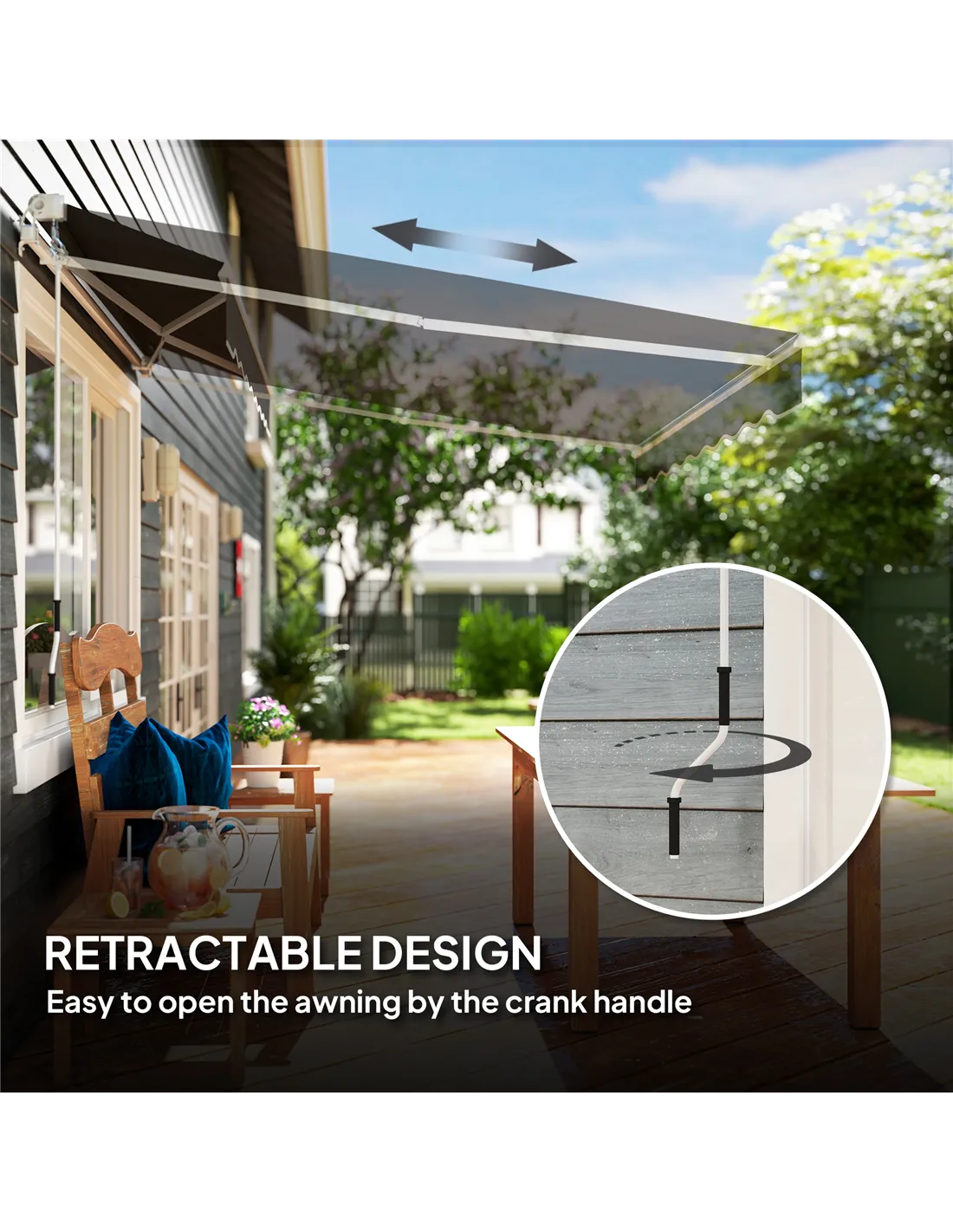 The Outsunny Garden Retractable Awning in black is an ideal addition to any British home seeking versatile outdoor shade. Perfectly suited for installation above windows, patio doors, or balconies, it provides adjustable shelter from the sun’s rays, creating a comfortable outdoor space for relaxation or entertaining. Thanks to its retractable design and hand crank operation, you can easily extend or retract the canopy to suit changing weather conditions or your preferred level of shade. Whether you’re enjoying a summer afternoon tea, protecting your garden furniture, or creating a cosy nook for reading, this awning enhances your outdoor living experience with style and practicality.