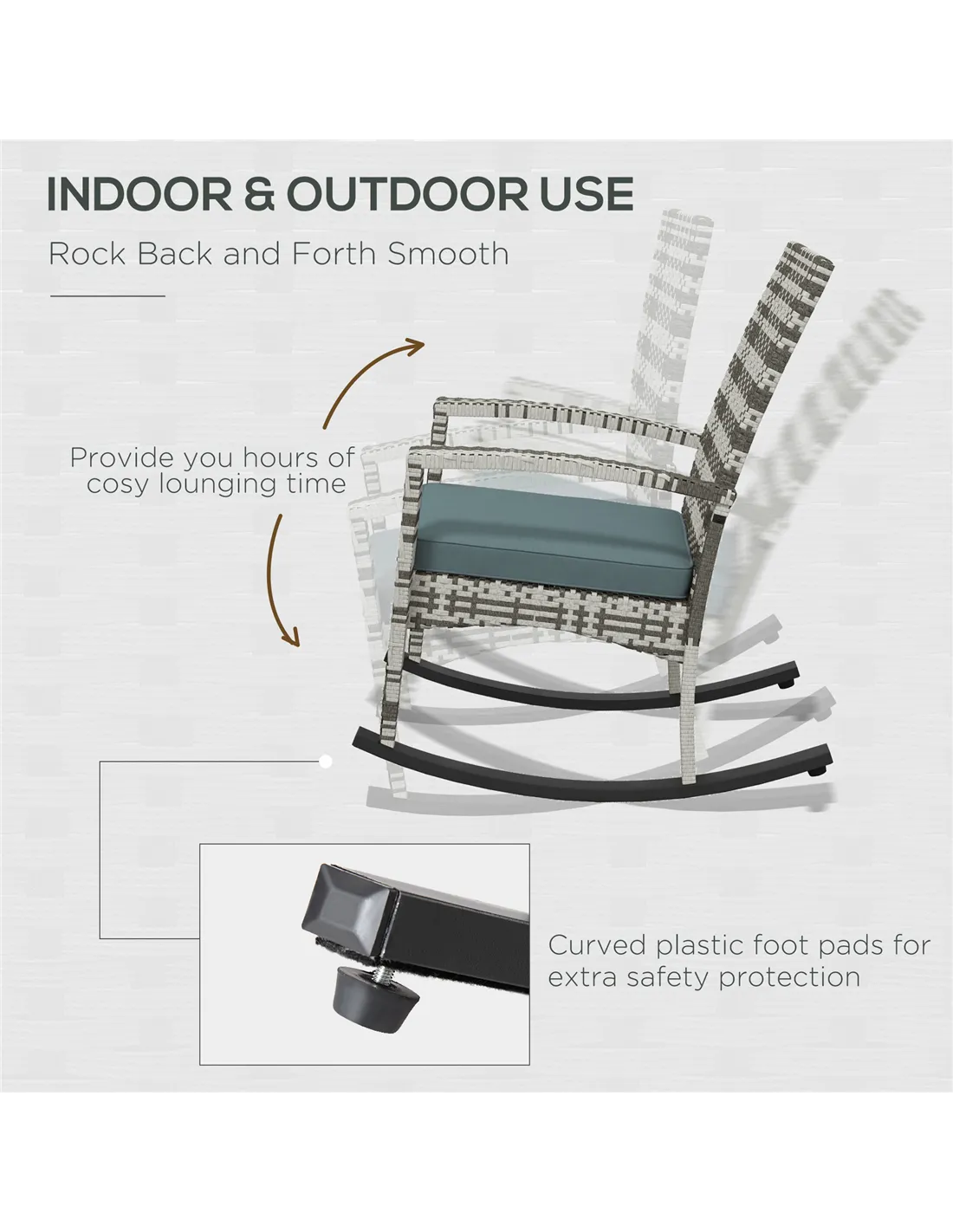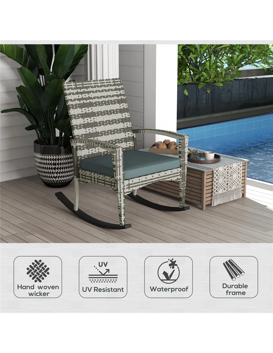 - Perfect for relaxing on your patio or garden, this rocking chair offers a comfortable retreat for reading, enjoying a cup of tea, or simply unwinding in the fresh air.