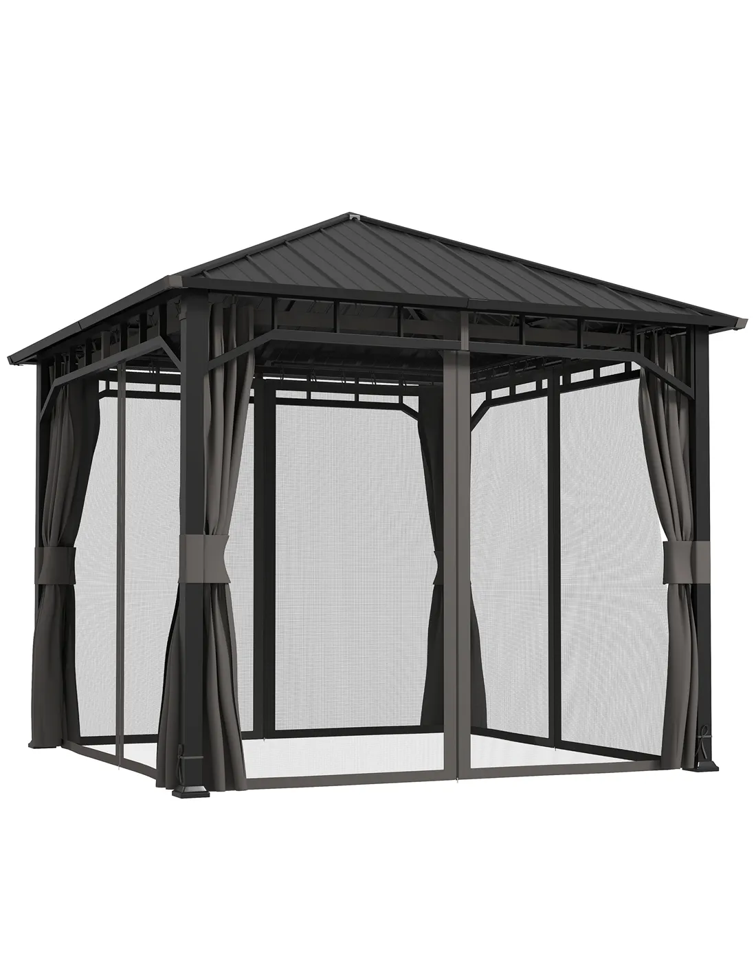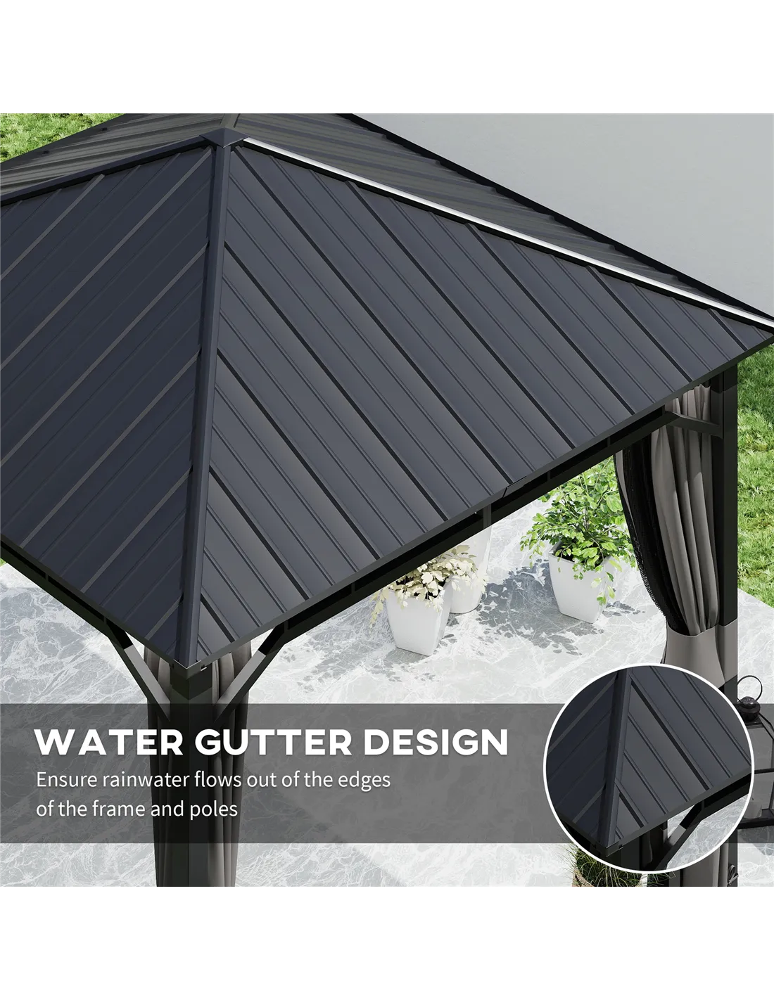 Based on customer reviews, the Outsunny hardtop gazebo is praised for its sturdy galvanised steel roof and effective water gutter system, which reliably prevents water pooling. Users appreciate the spacious design that comfortably fits six people and the added privacy and insect protection offered by the curtains and netting. Many highlight the ease of assembly when following the recommended three-person setup. The dark grey finish complements various garden styles, making it a popular choice among UK homeowners seeking a permanent outdoor shelter. Outsunny - a recognised brand in garden and outdoor furniture and accessories across the UK - consistently delivers quality and durability, as confirmed by satisfied buyers.