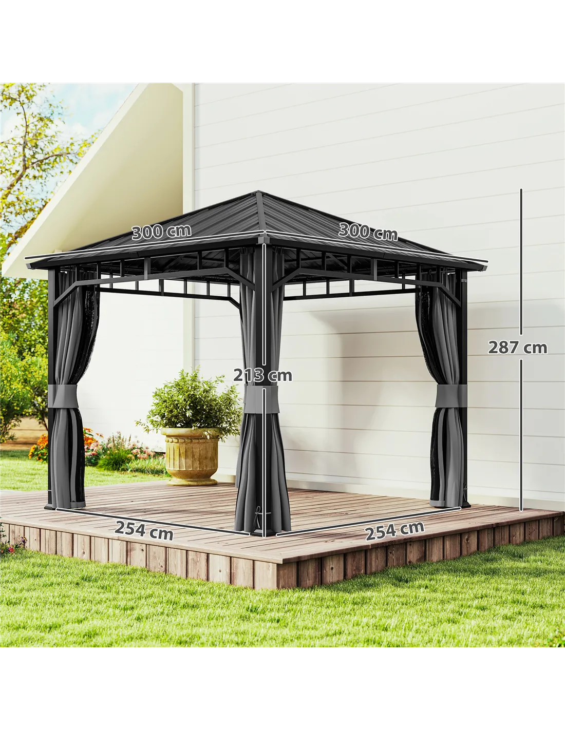 - Overall Dimensions: 300L x 300W x 287H cm