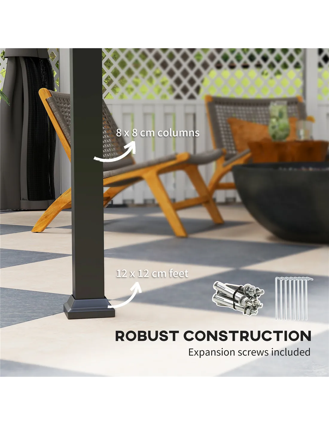 Assembly is required and is best completed with three people. The package includes all necessary screws and a detailed manual to guide you through the process. - Can the gazebo be securely fixed to the ground?