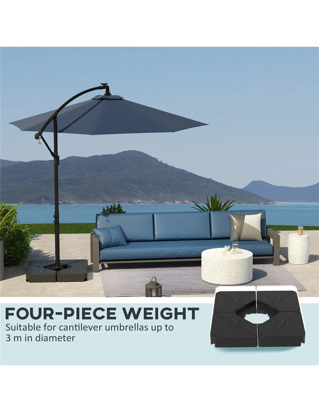 - Secure your Outsunny cantilever parasol effortlessly by placing these heavy-duty base weights on the cross base, ensuring stability even on windy days.
