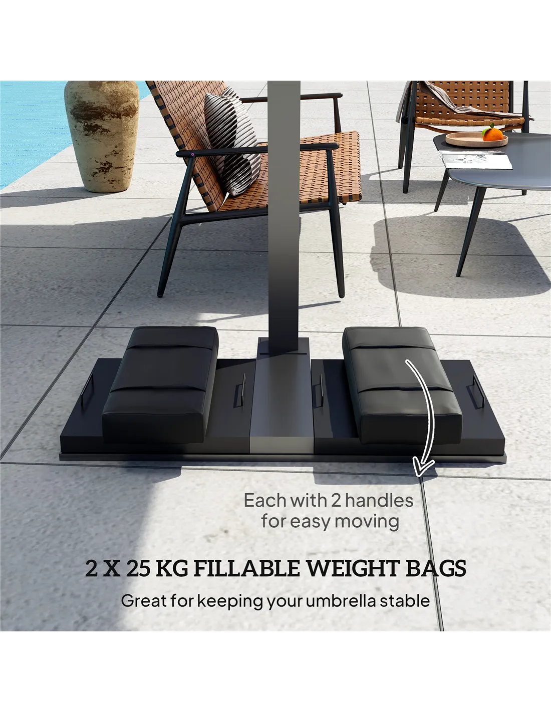 - Set of two weight bags enhances umbrella base stability