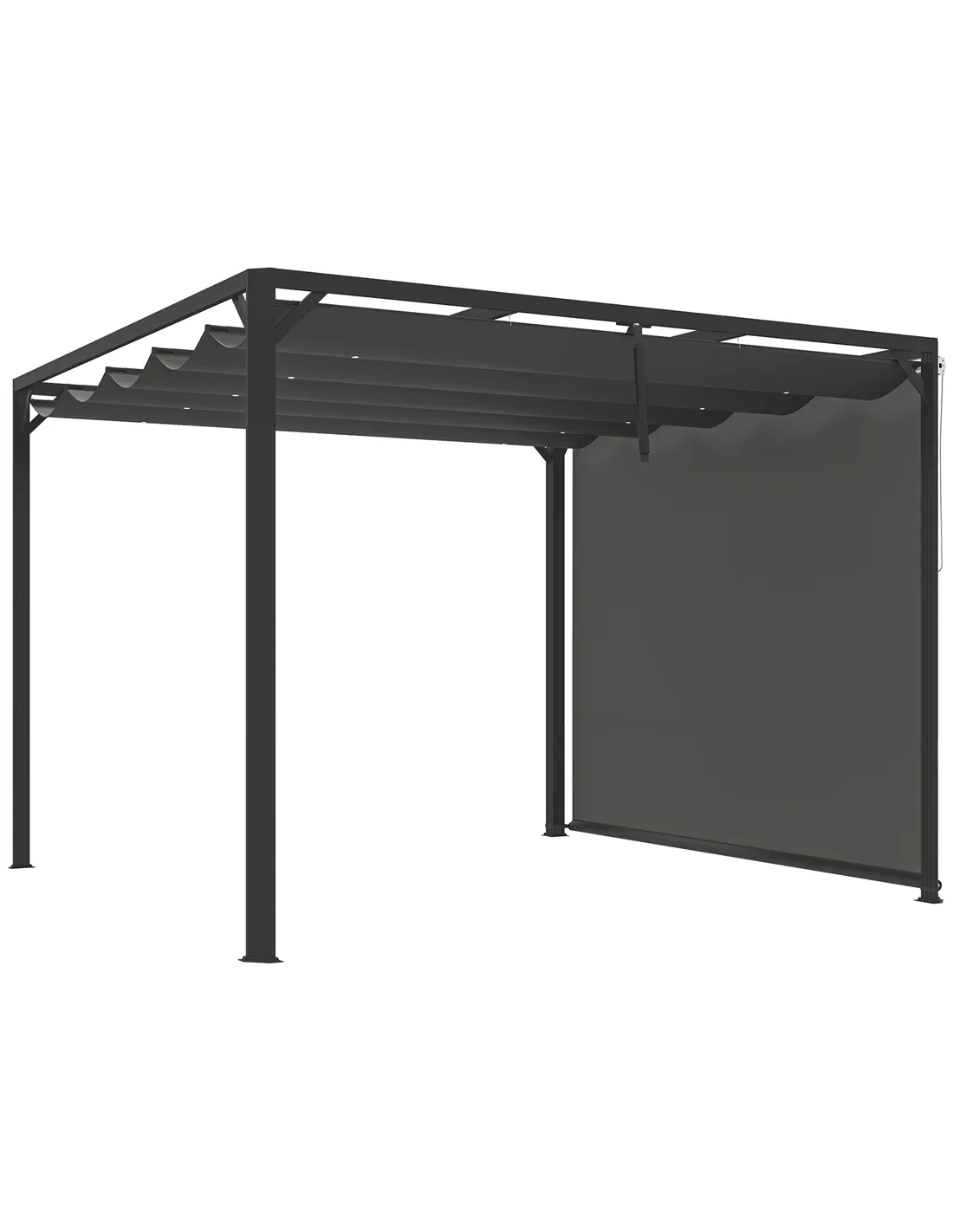 Outsunny 3 x 3m Aluminium Pergola, with Retractable Roof and Wall - Dark Grey